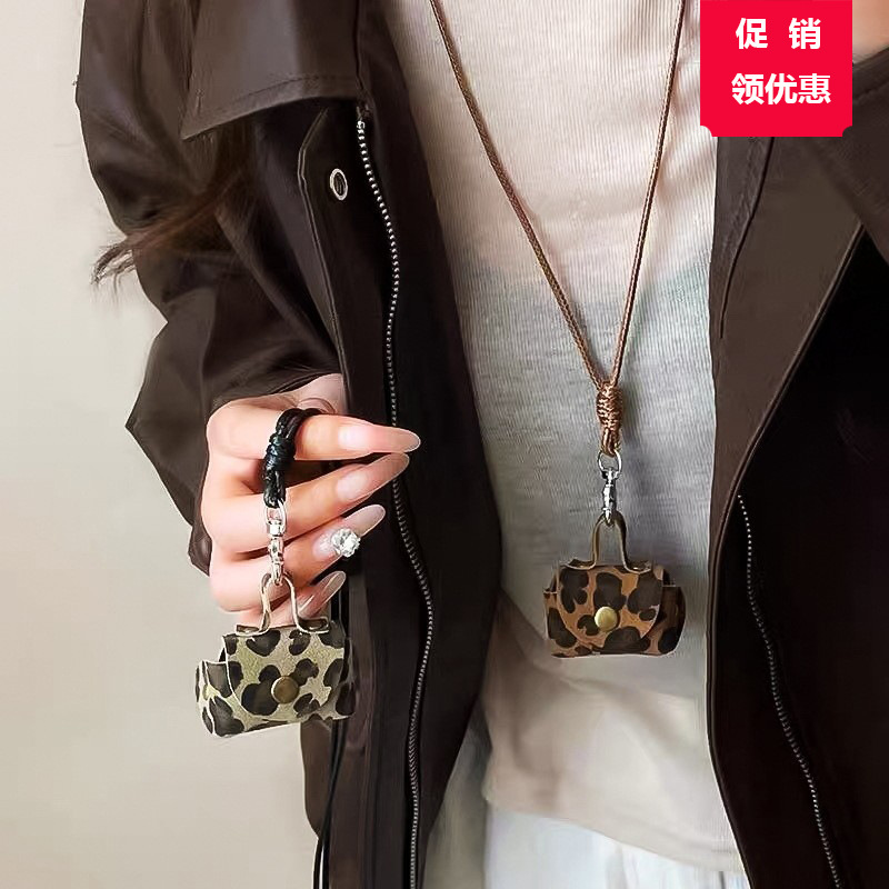 ヒョウ柄の革のイヤホンのキーホルダーのネックレスのレトロな美ラードの毛のチェーンの欧米の越境する高級感のアクセサリー