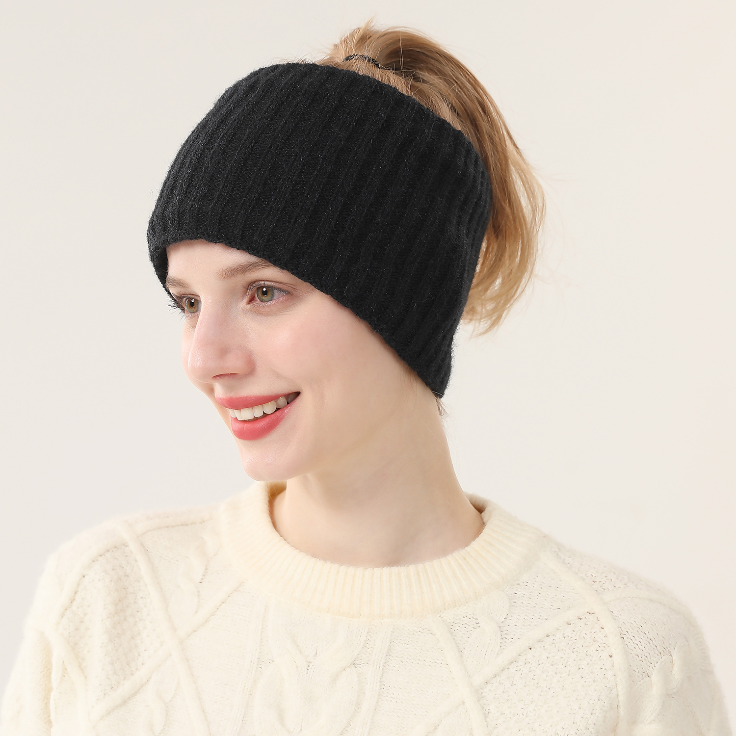 针织发带跨境新款秋冬加绒女士束毛保暖简约运动头巾发箍毛线头套