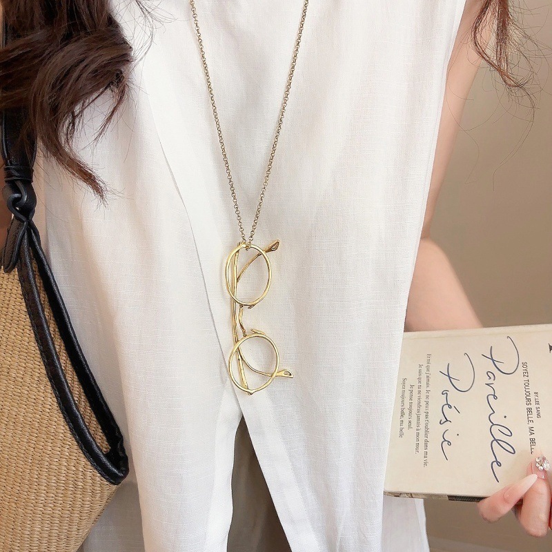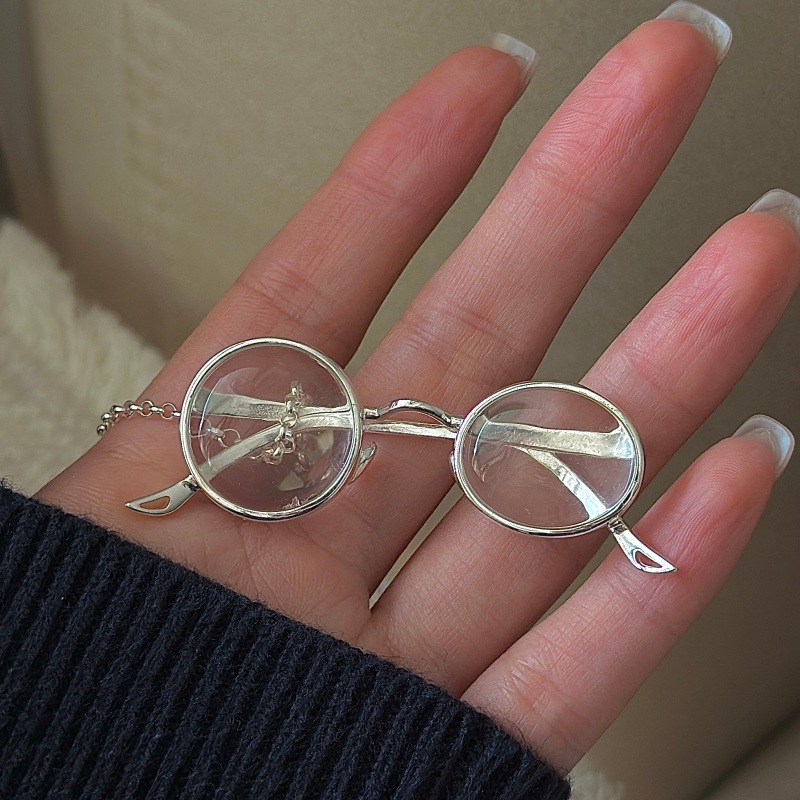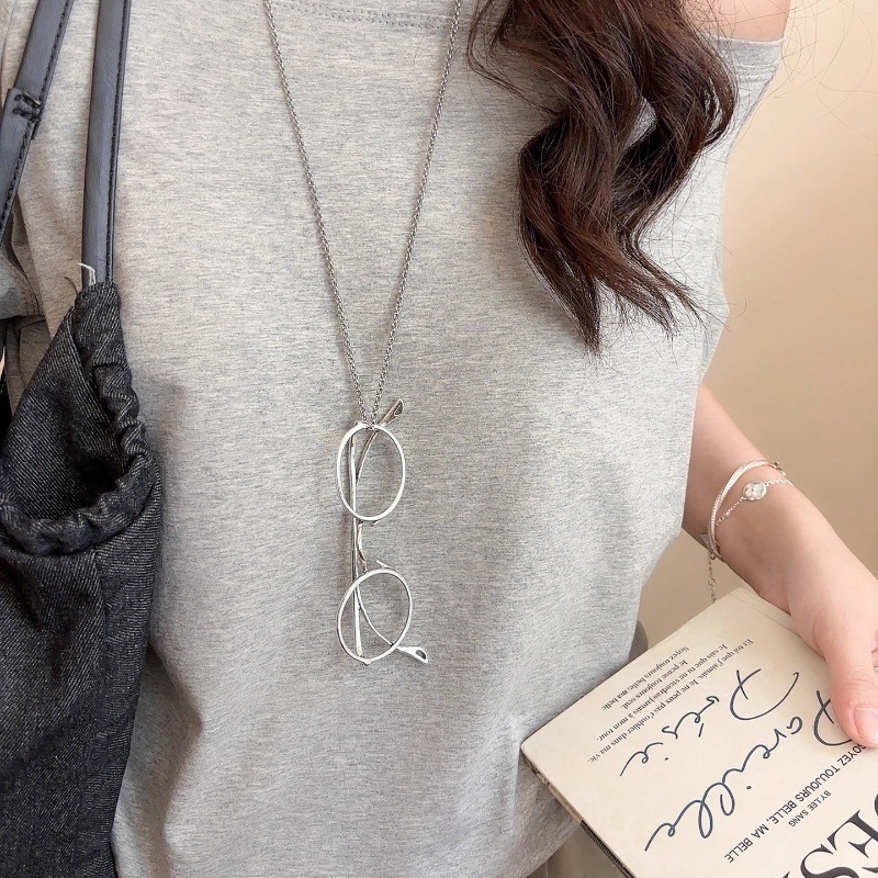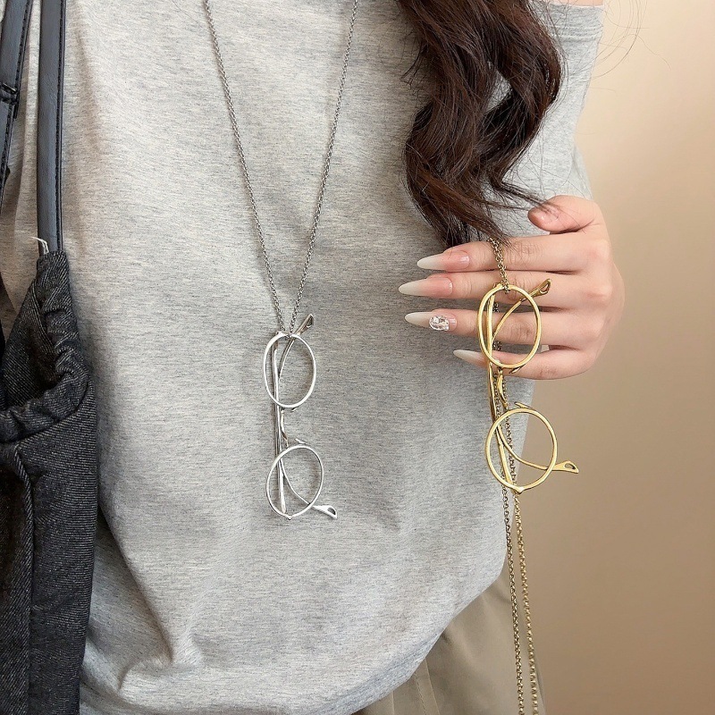 欧美金属简约眼镜吊坠项链时尚通勤休闲百搭锁骨链设计感小众饰品
