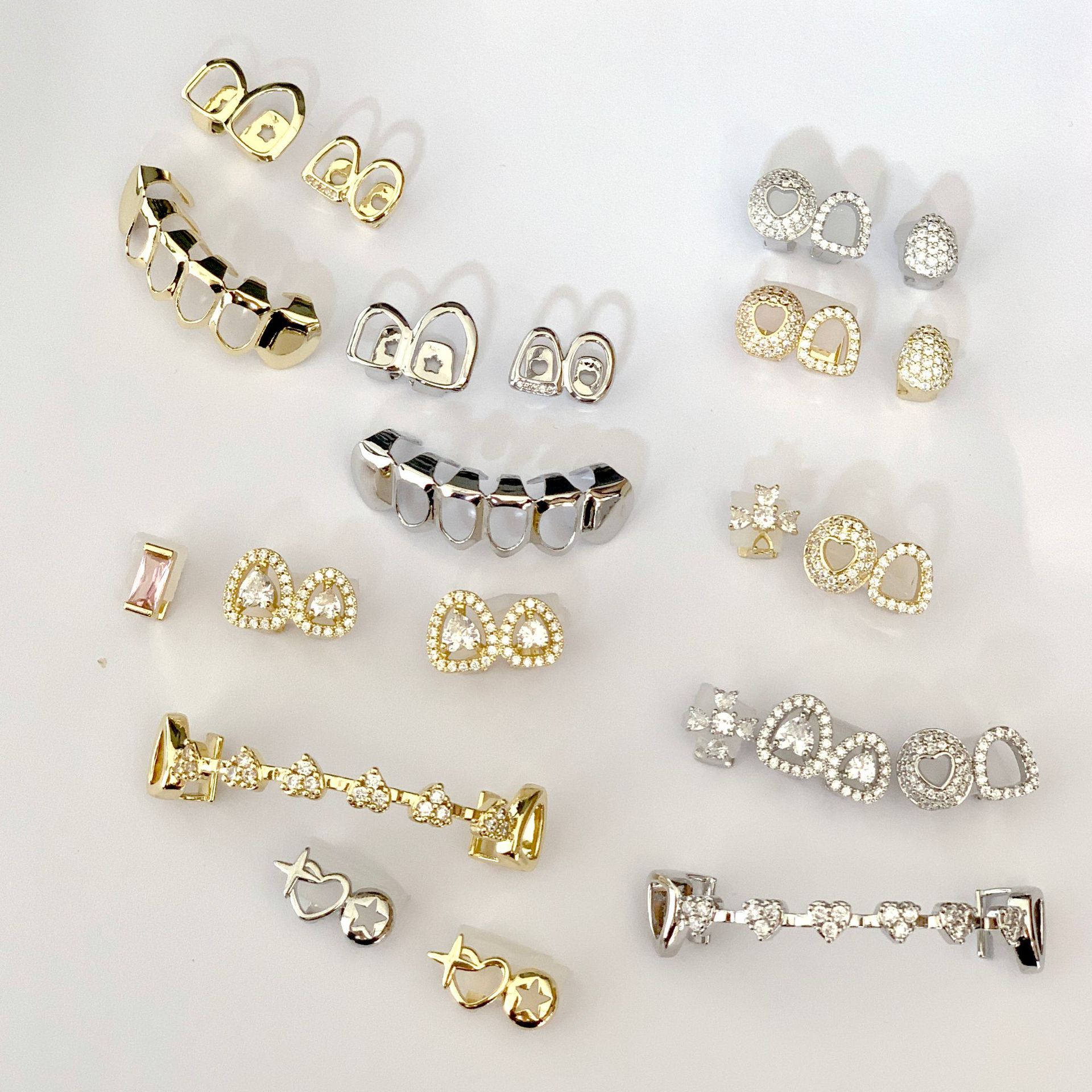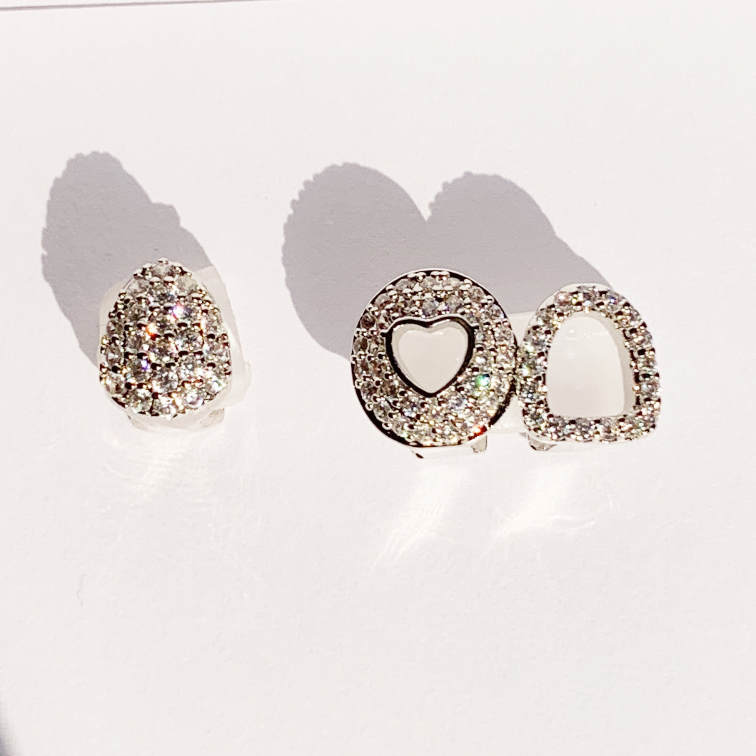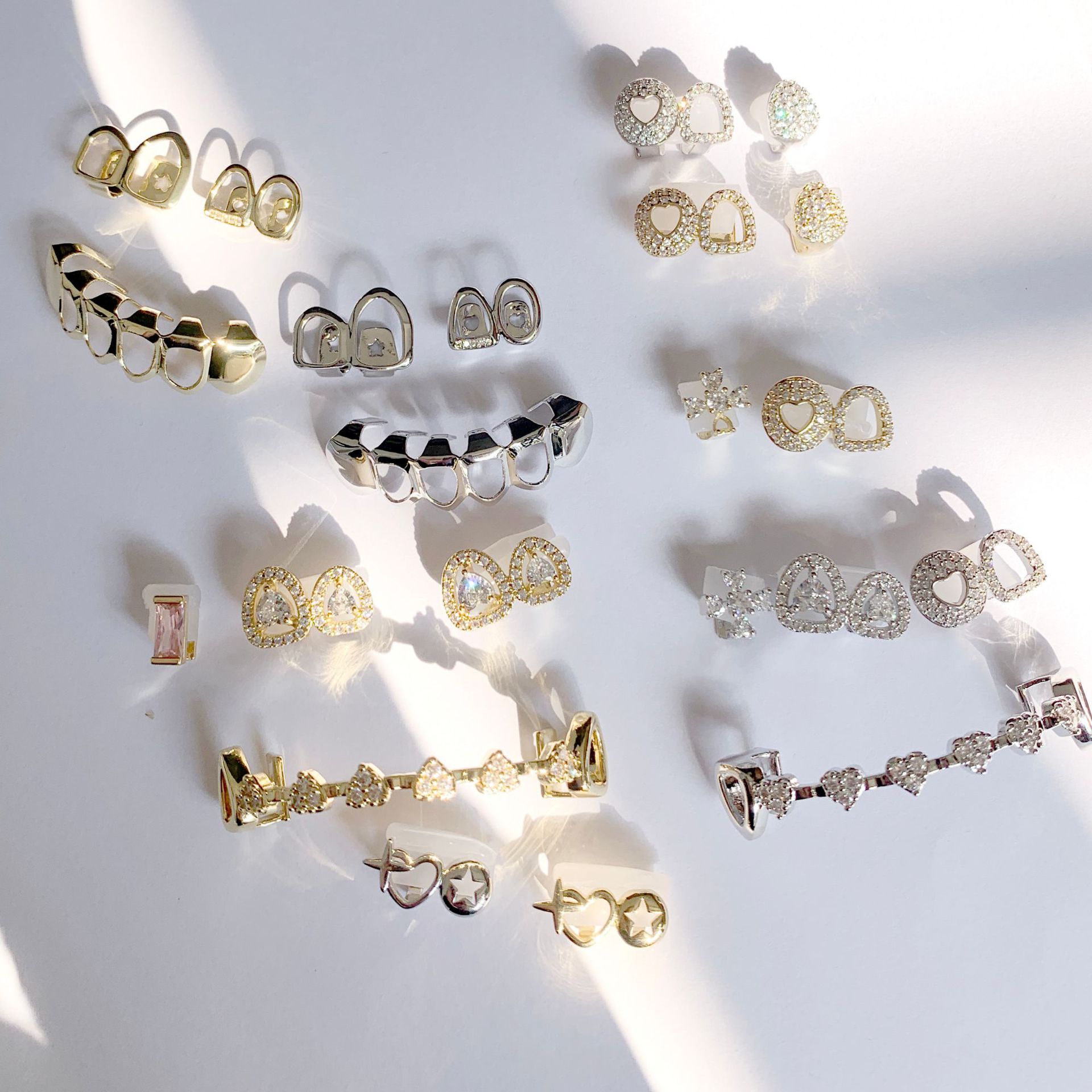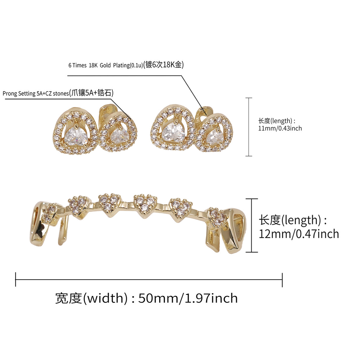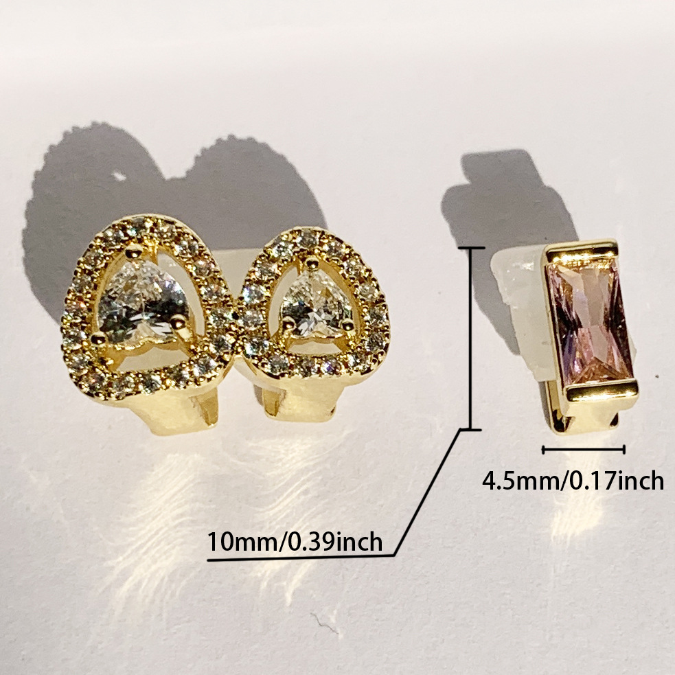 跨境TEMU热卖玉石锆石牙套嘻哈牙饰爱心四叶草文玩芒星万圣节