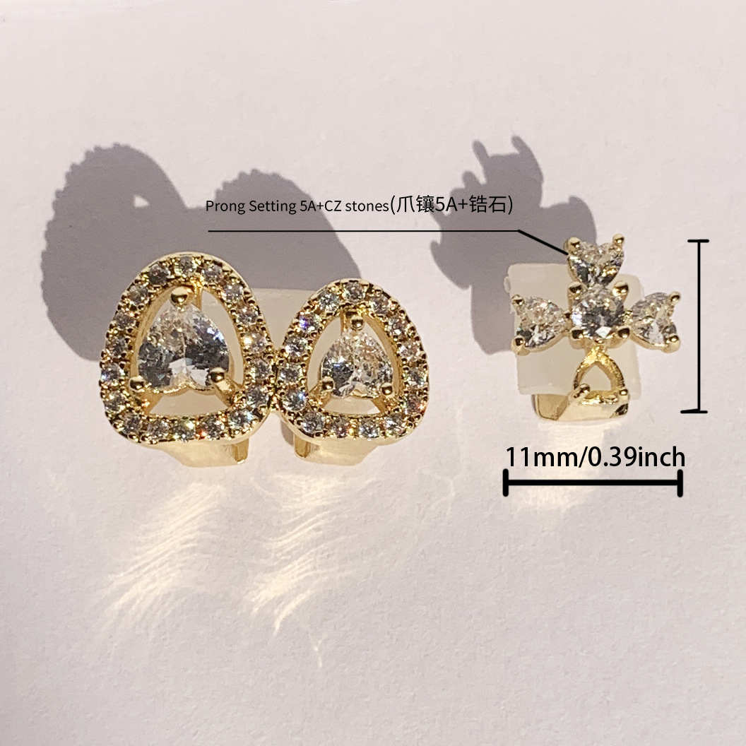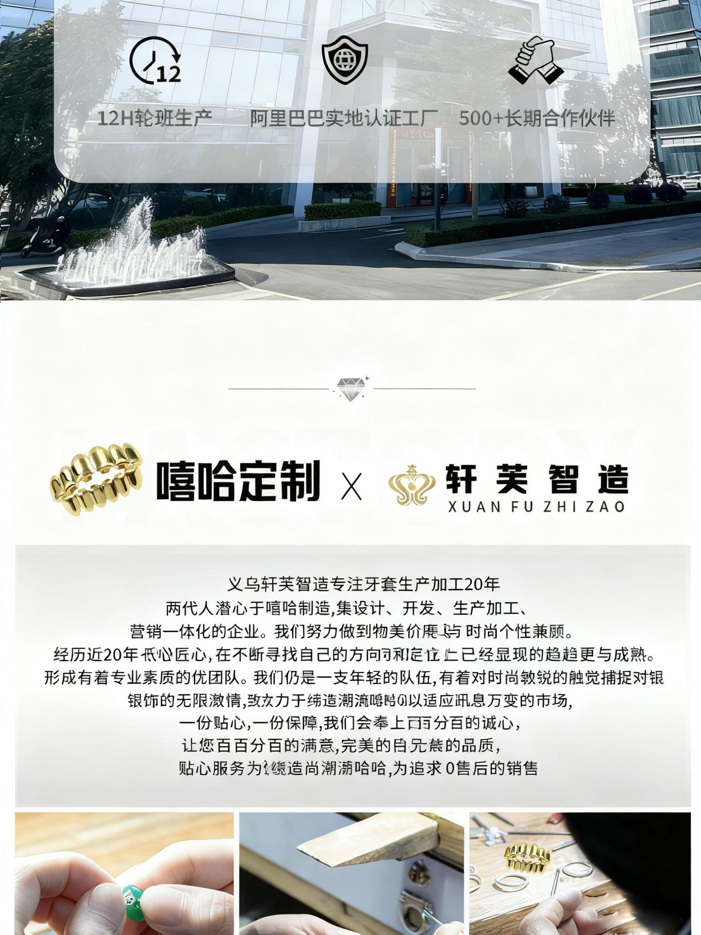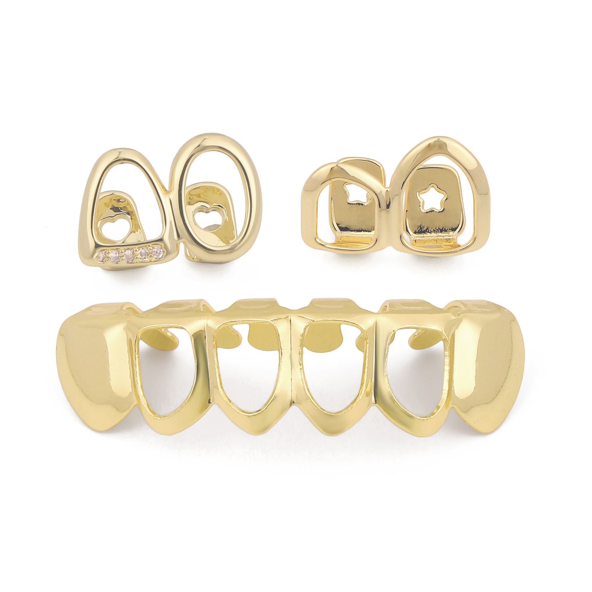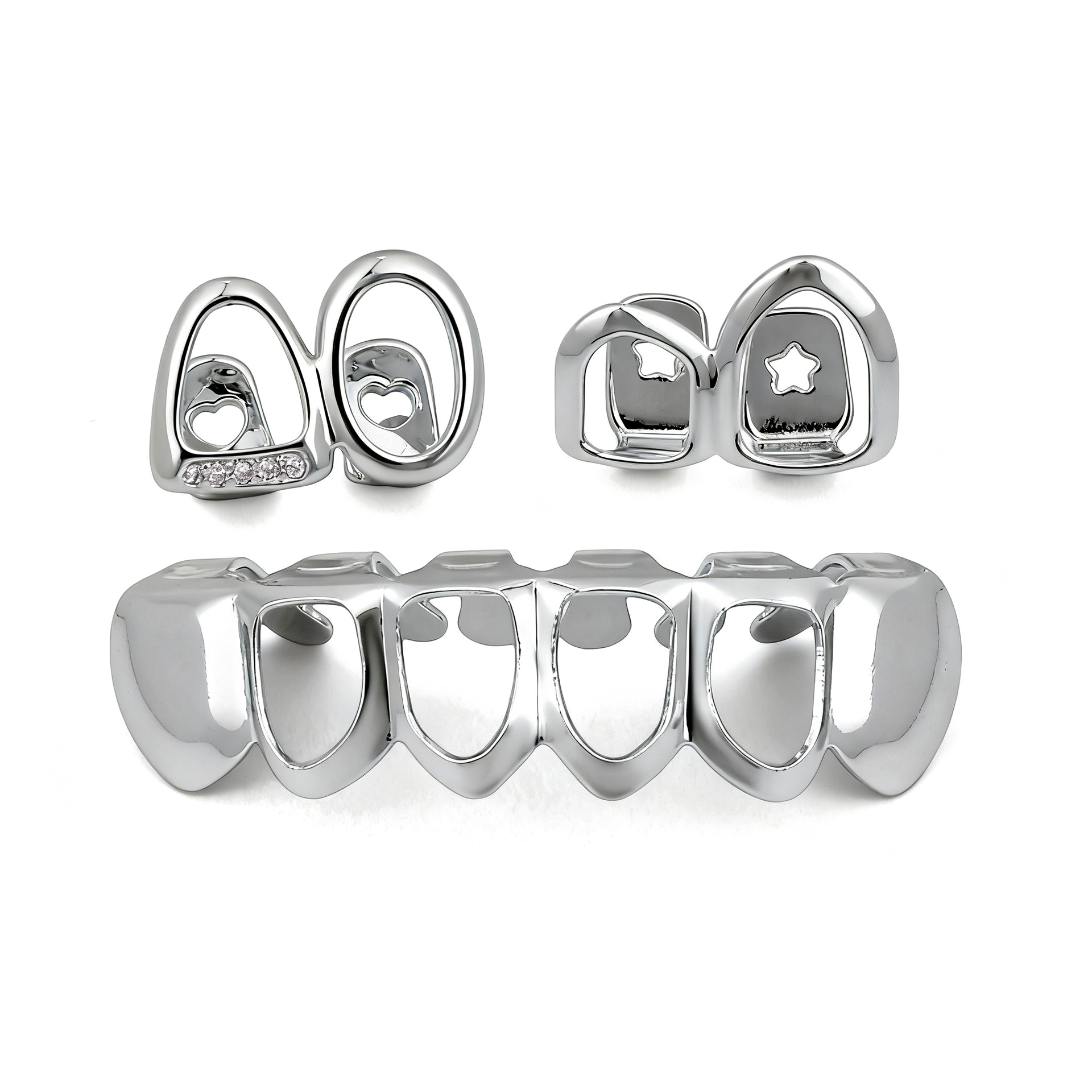 跨境TEMU热卖玉石锆石牙套嘻哈牙饰爱心四叶草文玩芒星万圣节