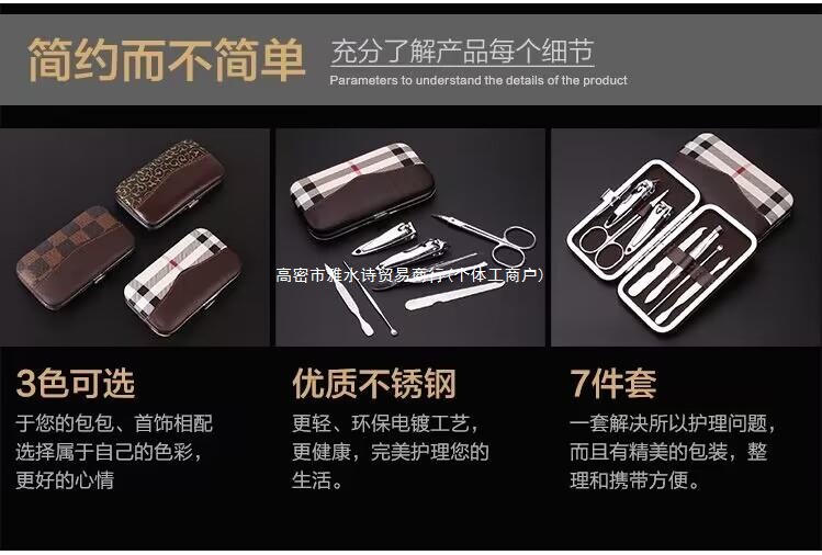 颜色 四件套指甲剪 1.6,普通七件套 (现货)3.35,普通七件套30个以上3.15,普通七件套100个以上2.98,普通七件套300个以上2.93,普通七件套500个以上2.85,升级款-七件套 4.15,苹果指甲剪8件套 3.4,苹果指甲剪9件套 4.6,便携4件套 3.8,升级款方格糖果七件套 5.9,普通糖果色 5.5,便携8件套8.3,商务四件套6.8,黑色加厚七件套5.2,玫瑰金加厚七件套5.1,便携12件套11.2,便携16件套14.2