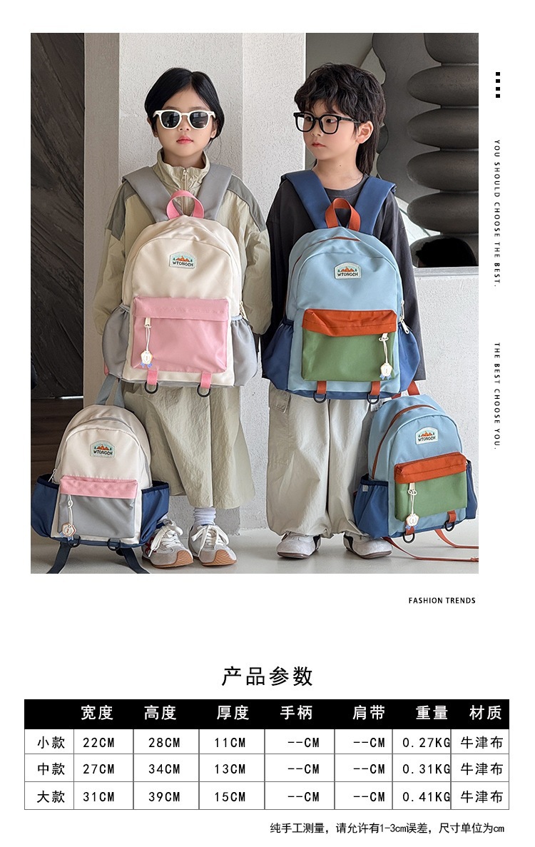 新款拼色儿童双肩包可爱幼儿园书包男童女童休闲轻便外出旅游背包