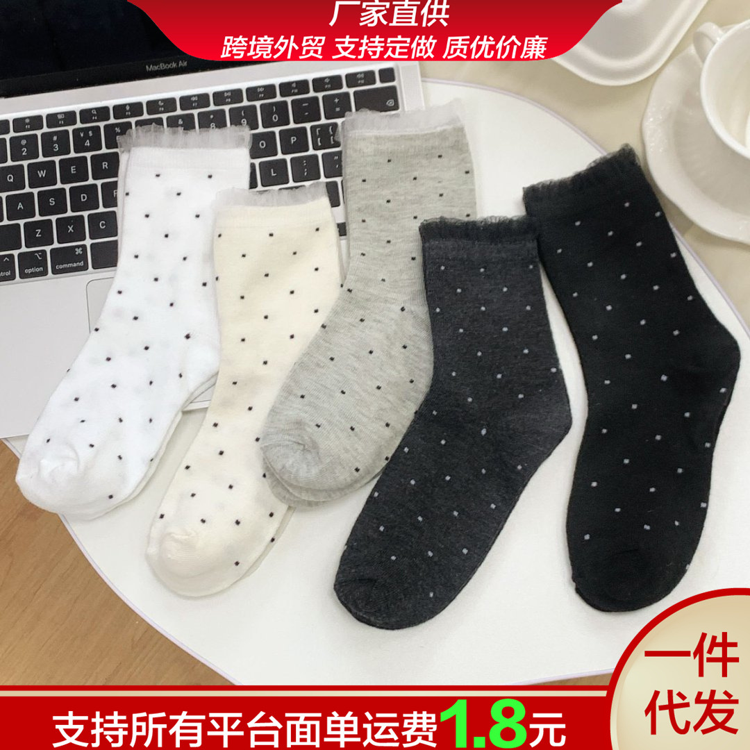 韓国春夏インミッドカーフソックスミュウバレエレースミッドカーフソックスレディース水玉ガーリースタイルパイルソックス