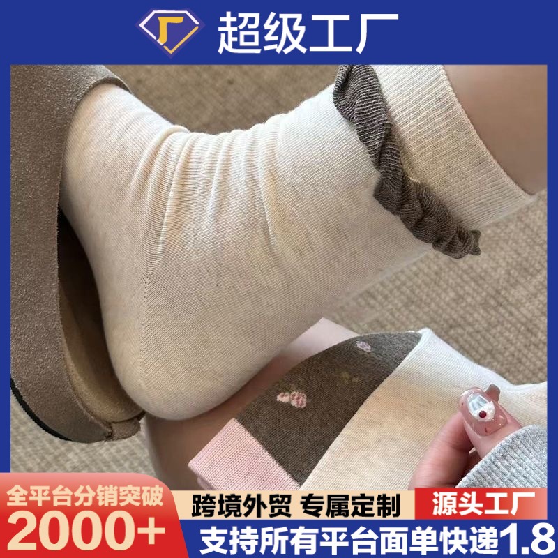 复古碎花袜子花边秋冬可爱中筒袜ins潮简约百搭透气堆堆袜