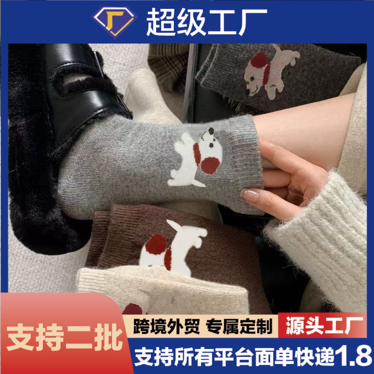 秋冬卡通可爱毛绒小狗厚实中筒袜韩系ins袜子女学院风百搭堆堆袜
