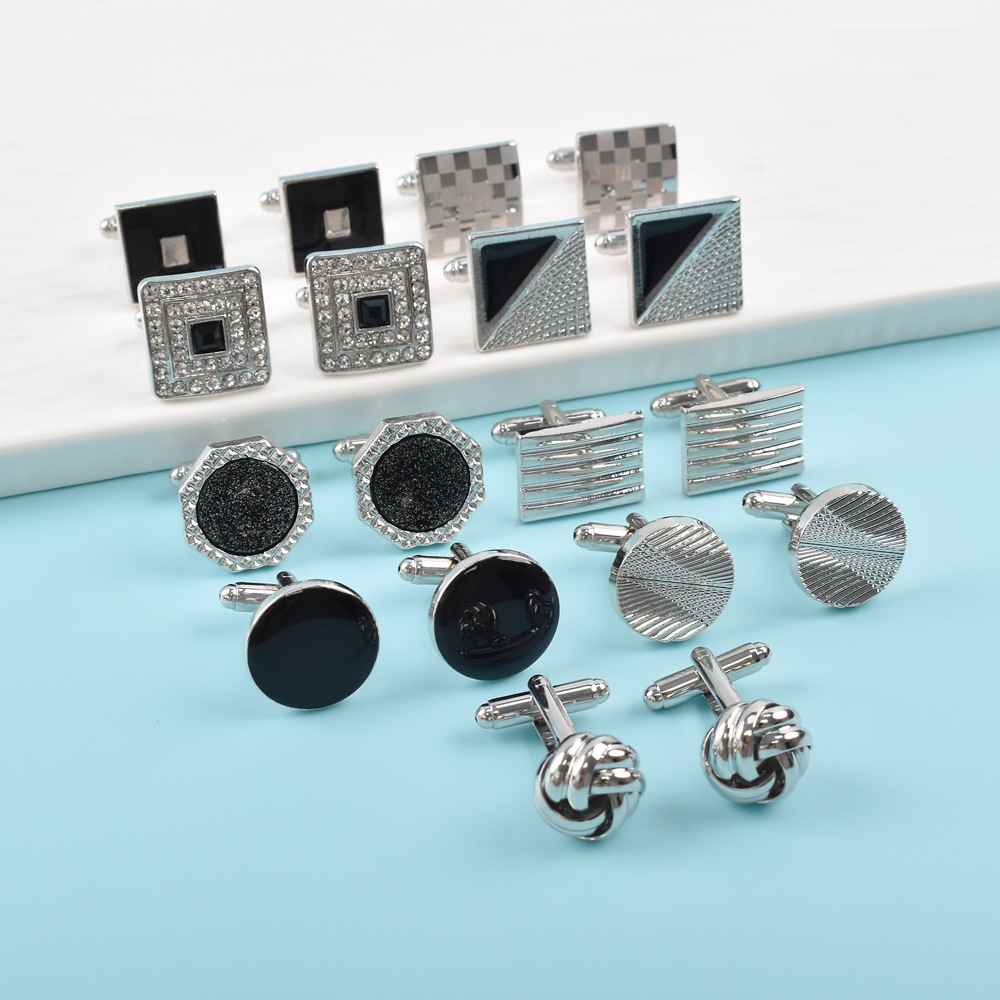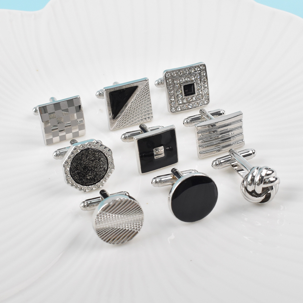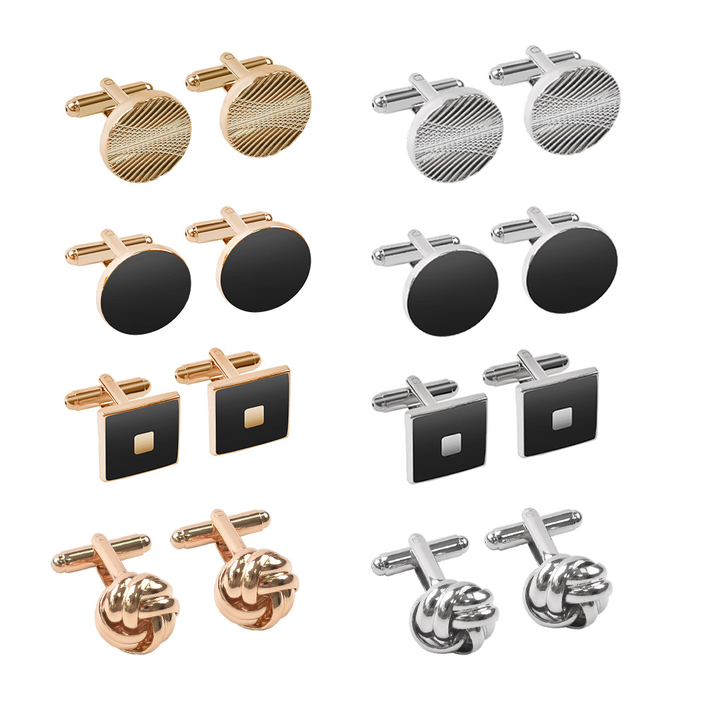 アマゾンクロスボーダー新型フレンチカフスセットシンプルな透かし彫り麻花カフスボタン円形正方形塗装カフスボタン