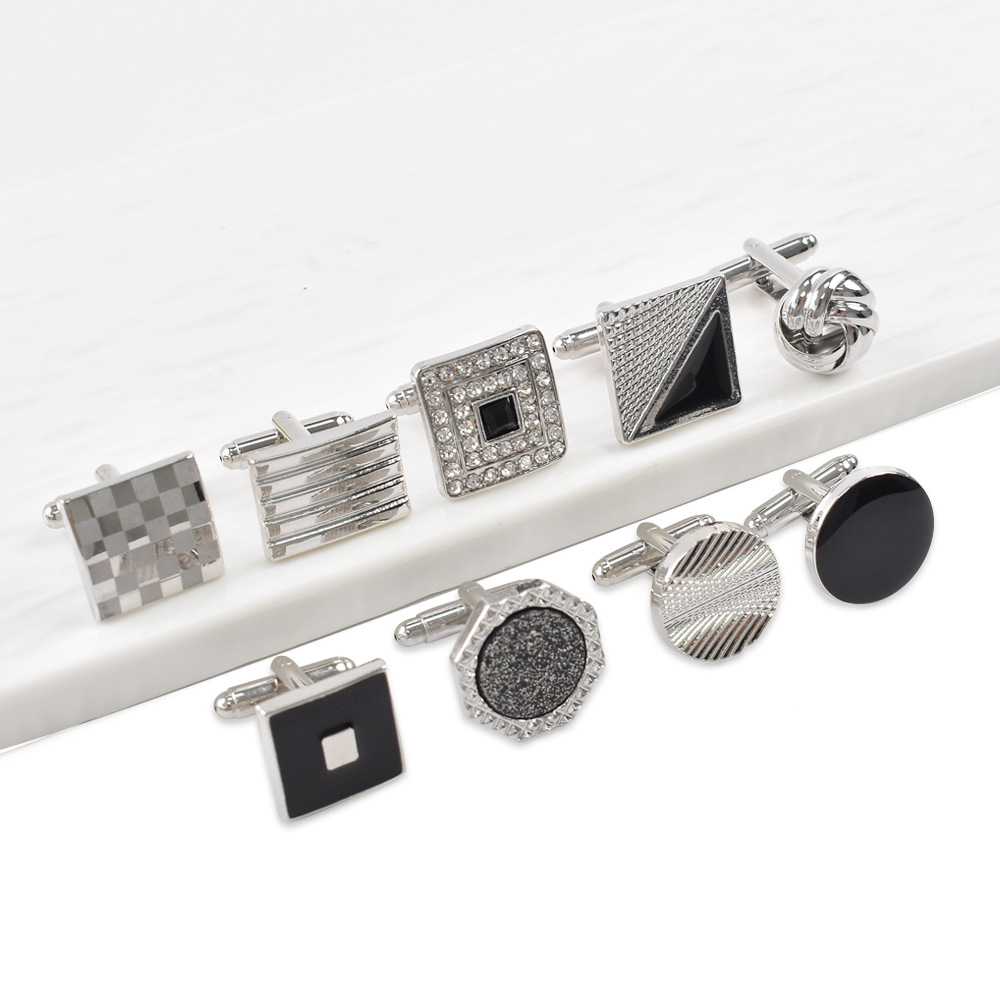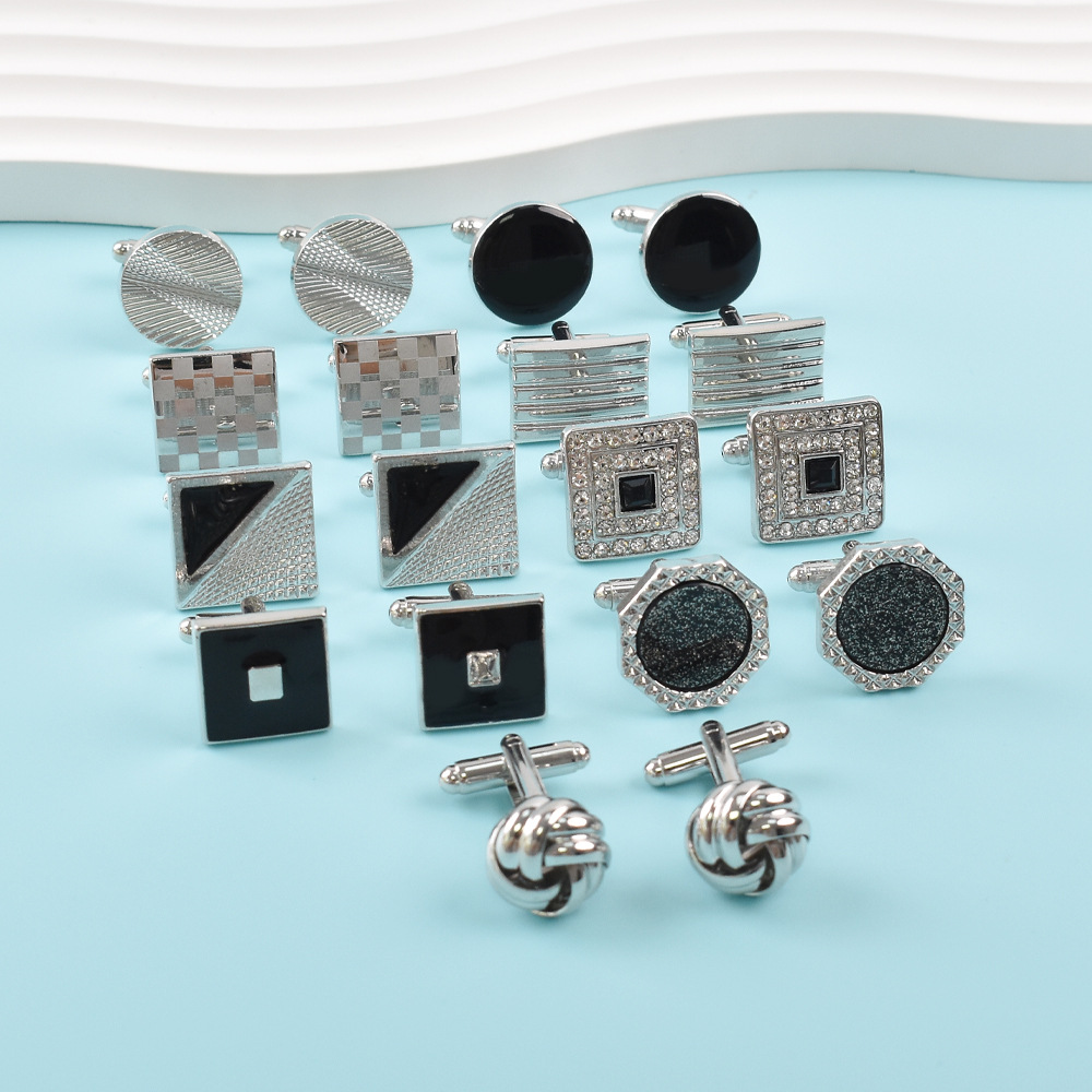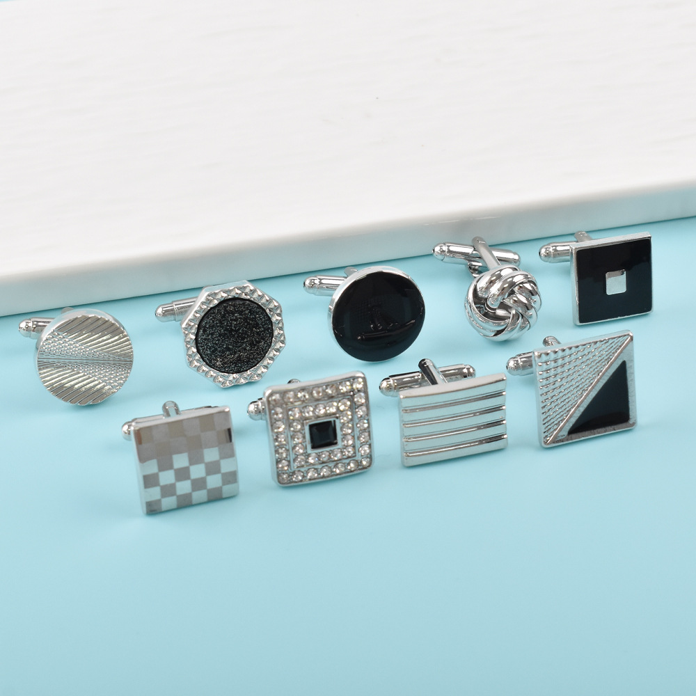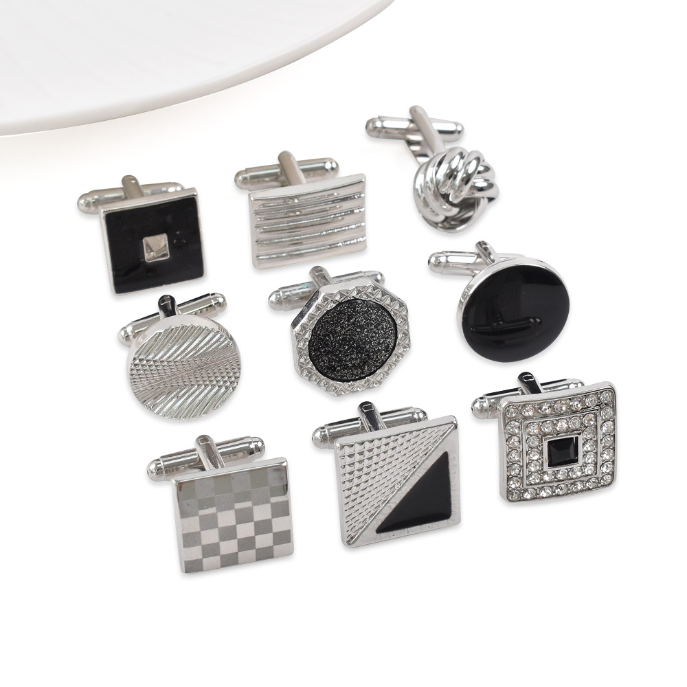 アマゾンクロスボーダー新型フレンチカフスセットシンプルな透かし彫り麻花カフスボタン円形正方形塗装カフスボタン