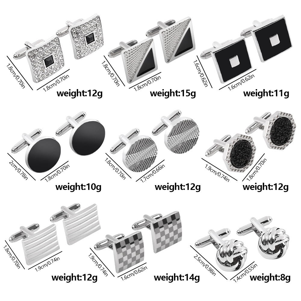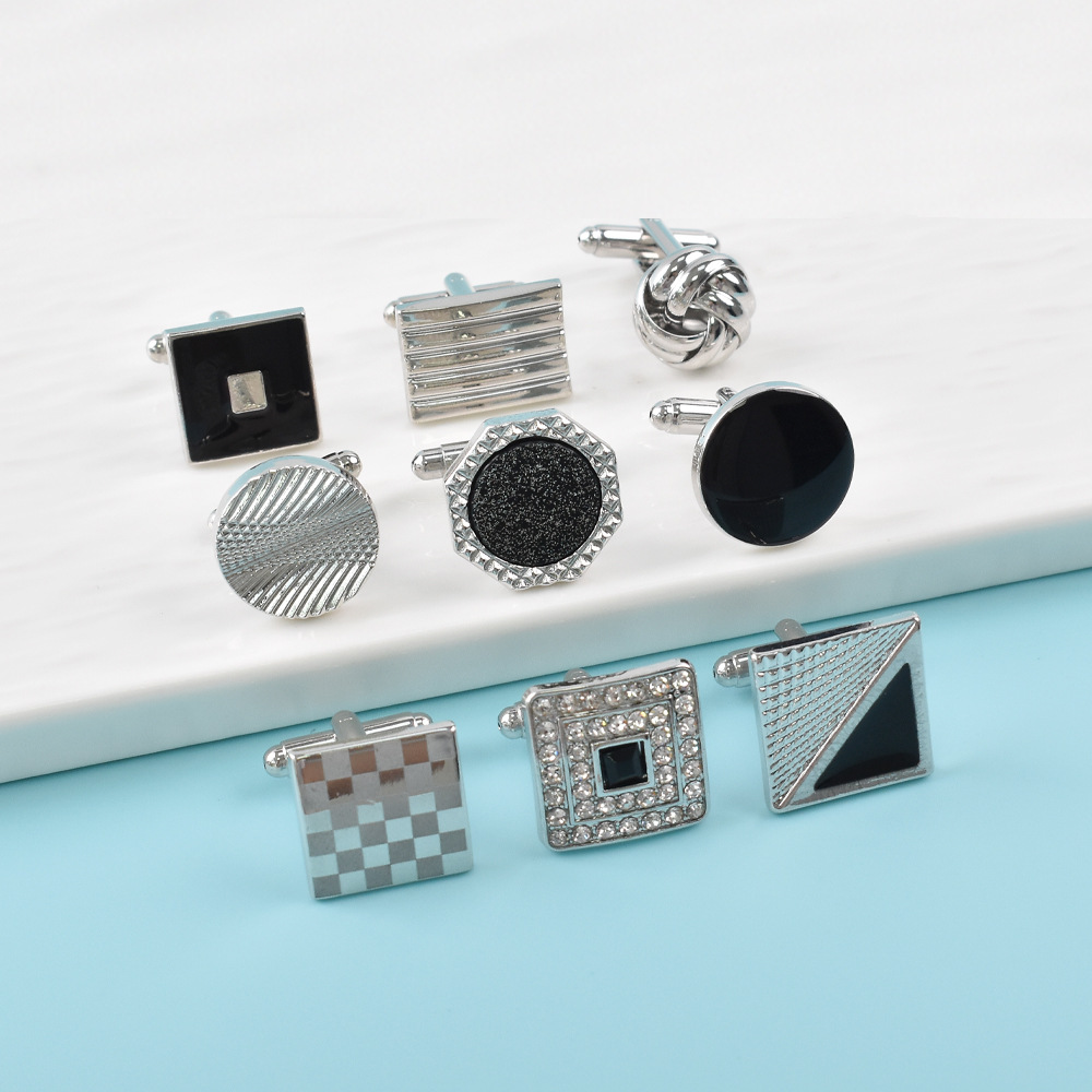 亚马逊跨境新款正方形烤漆袖扣法式商务衬衫圆形雕花袖钉麻花袖扣