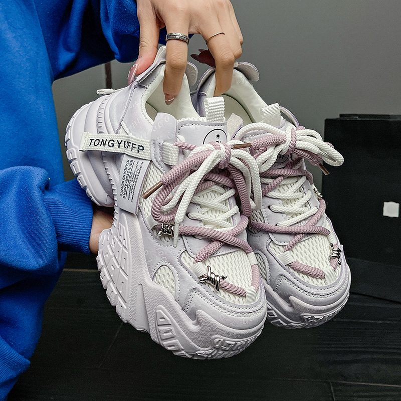 厚い底のお父さんの靴の2025新型の女性の靴の靴の靴のベルトのネットの通気性のランニングのレジャー靴