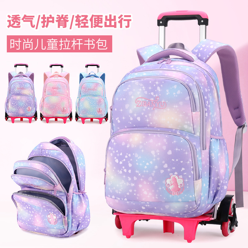 自然鱼厂家直销新品拉杆书包小学生高颜值小公主时尚可爱儿童书包