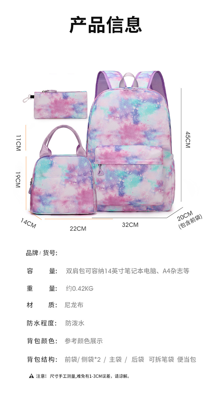 三件套双肩包女生跨境韩版潮流大容量书包防水中学生耐磨笔袋背包