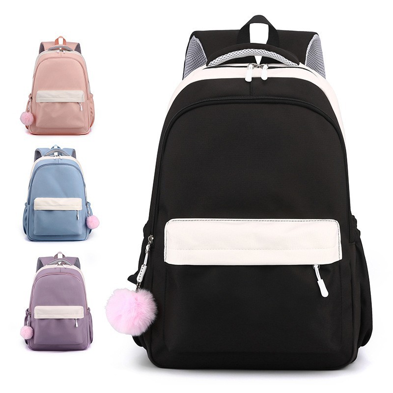 双肩背包书包学生校园带毛球背包