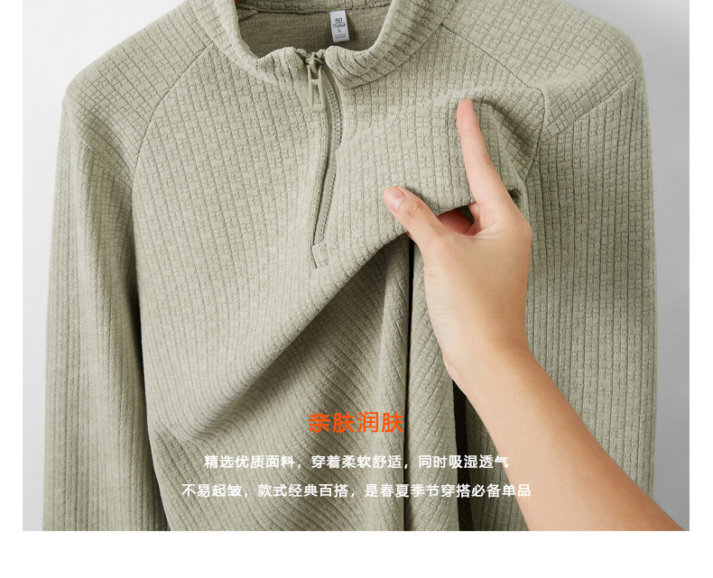 长袖立领t恤男秋冬华夫格半拉链打底衫纯色套头百搭保暖格纹长款