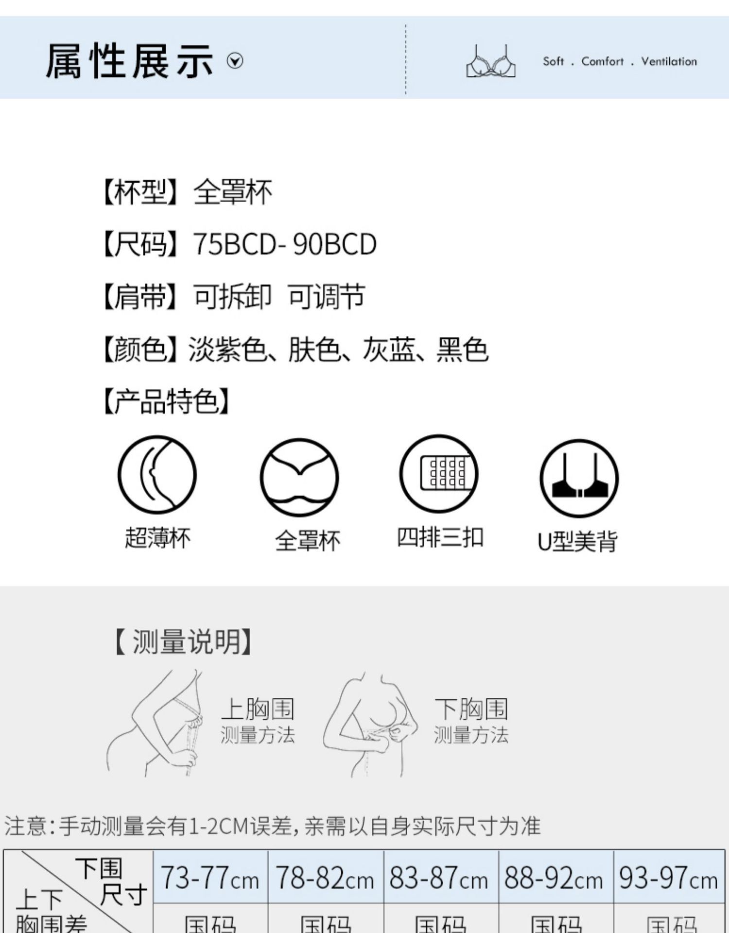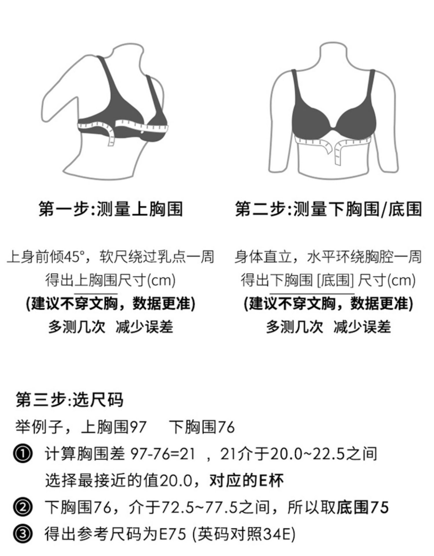 尺码 34/75BC,36/80BC,38/85BC,40/90BC,42/95BC
