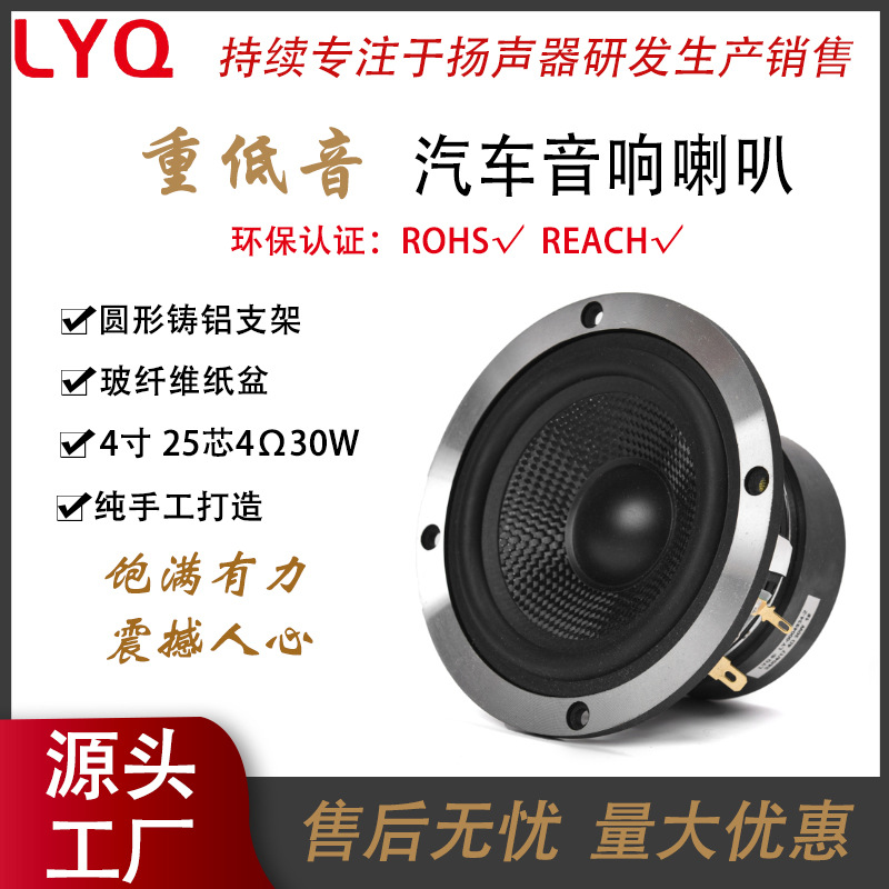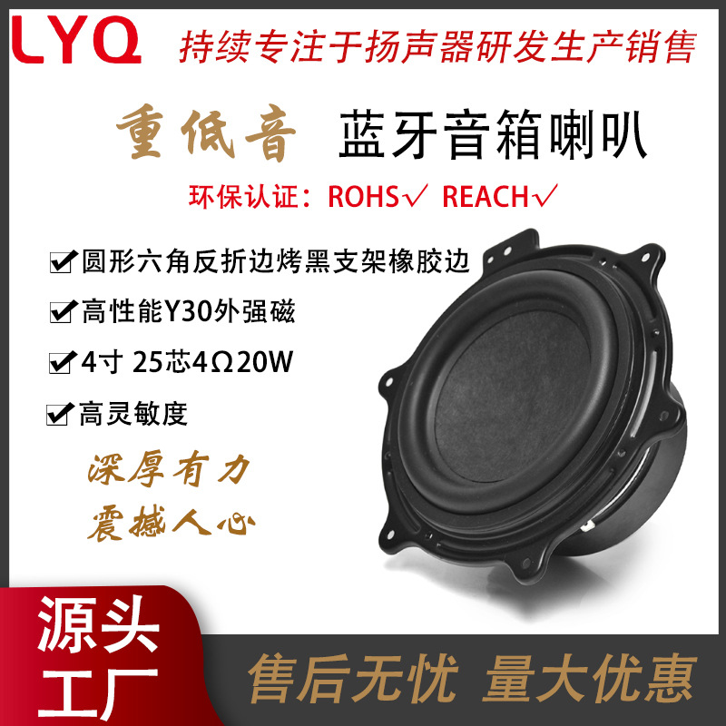 4寸圆形反折边铝酮体橡胶边25芯4欧25瓦80磁外磁全频蓝牙音箱喇叭