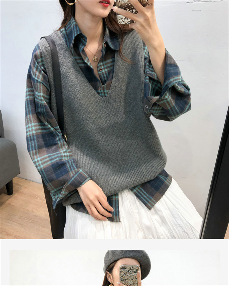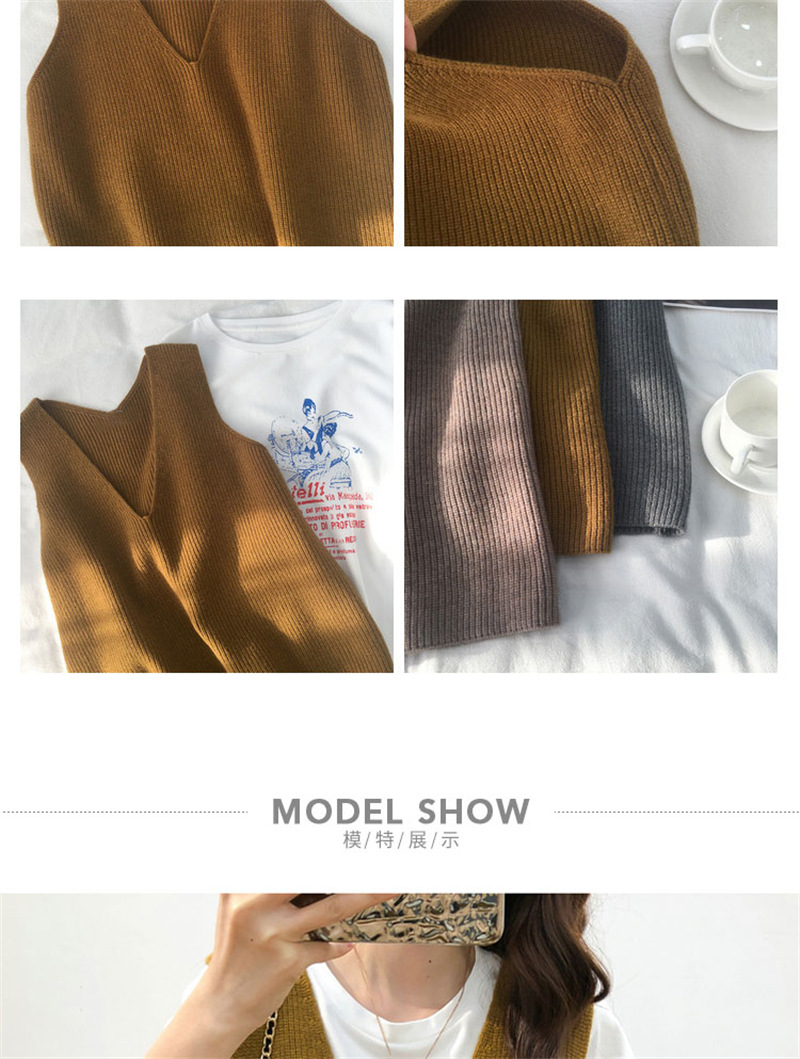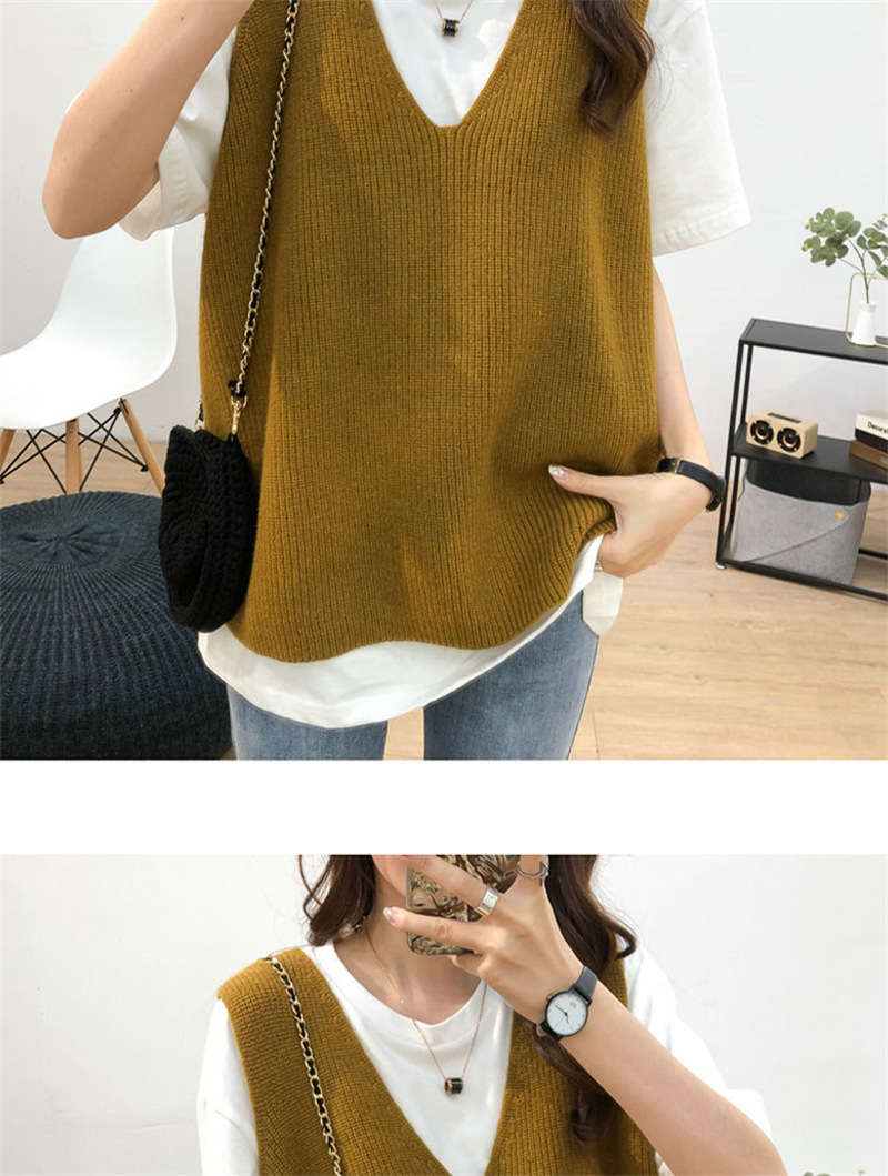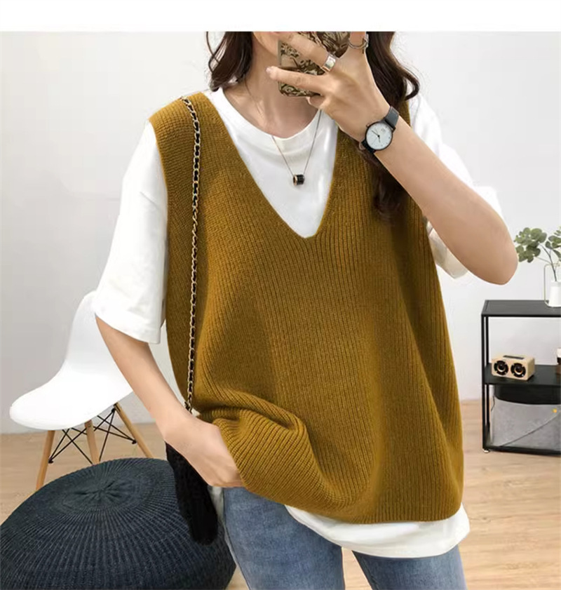 日韓の復古の怠惰なvネックの馬甲の女性の春の外はゆったりしていて痩せています。