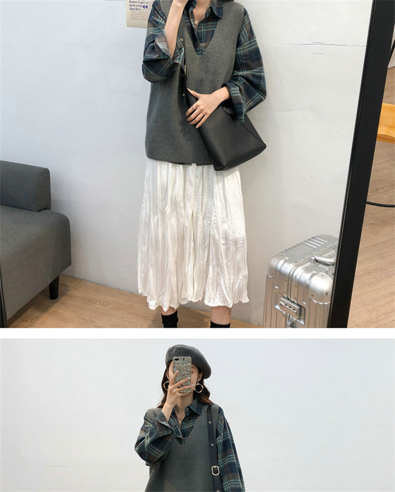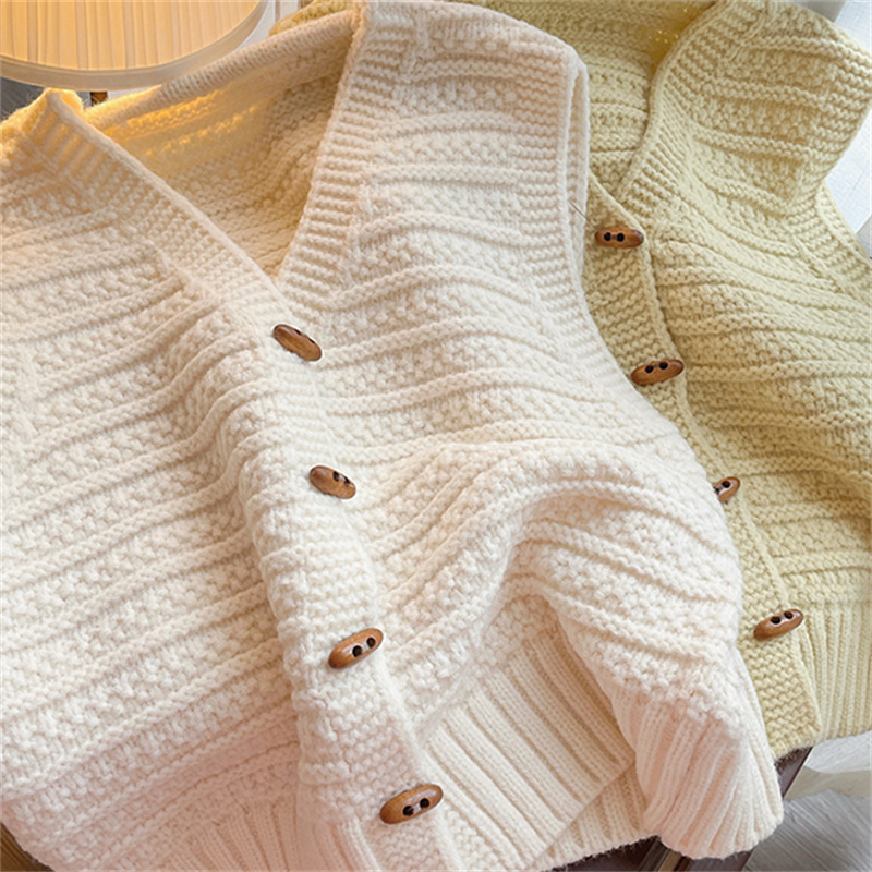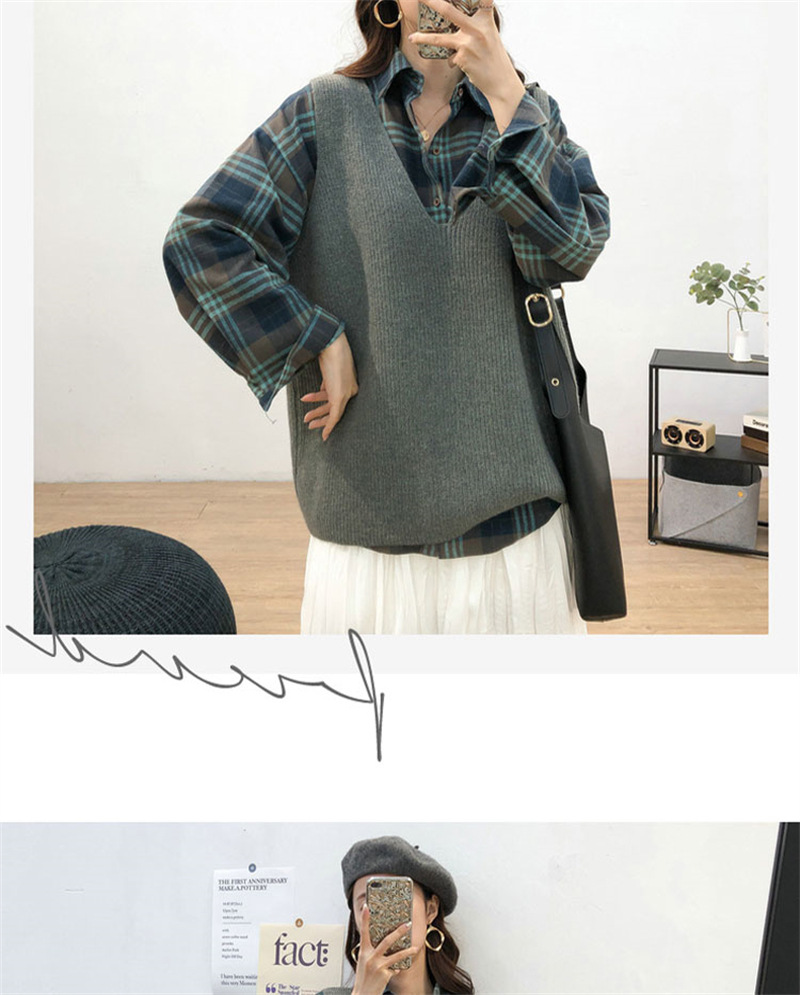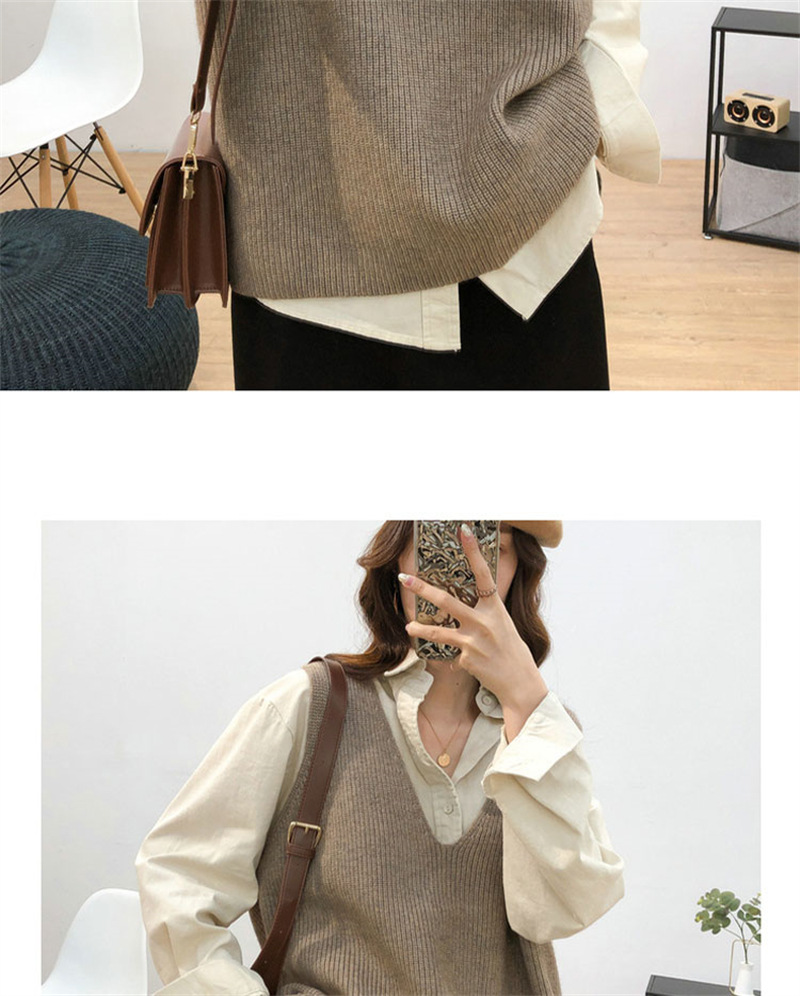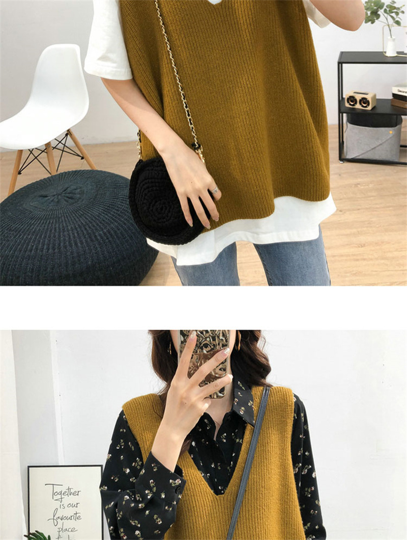 日韓の復古の怠惰なvネックの馬甲の女性の春の外はゆったりしていて痩せています。