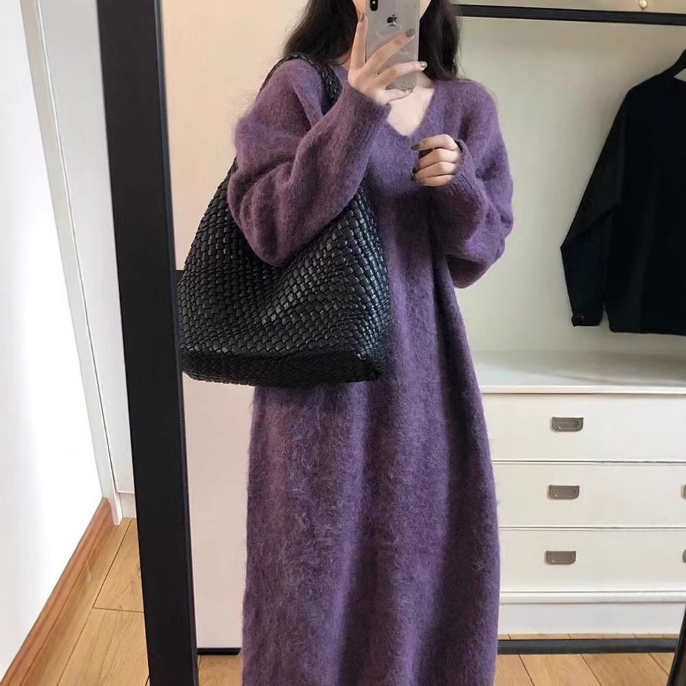 秋には高級感のあるvネックのニットワンピースとコートがゆったりしていて、痩せています。