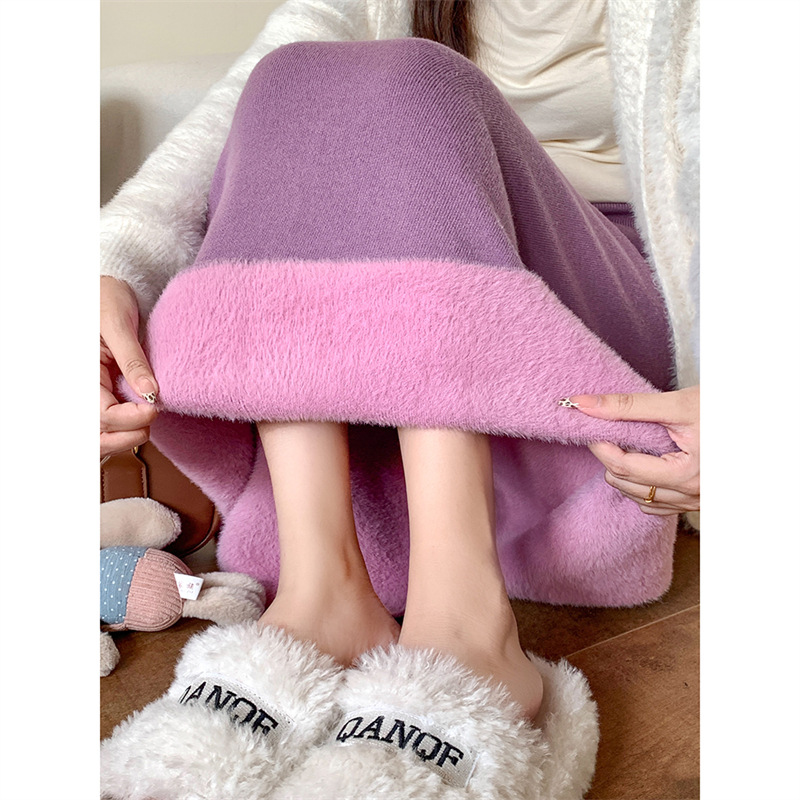 ベルベットの厚い一体ベルベットのニットスカートの高腰の柔らかいモチモチはミンクのベルベットのヒップスカートの垂直感のオープンフォークのストレートスカートを模倣しています