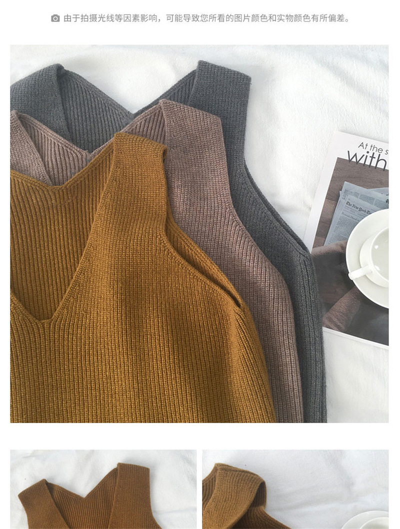 复古慵懒风V领针织马甲女春秋款无袖毛衣纯色洋气百搭背心坎肩潮