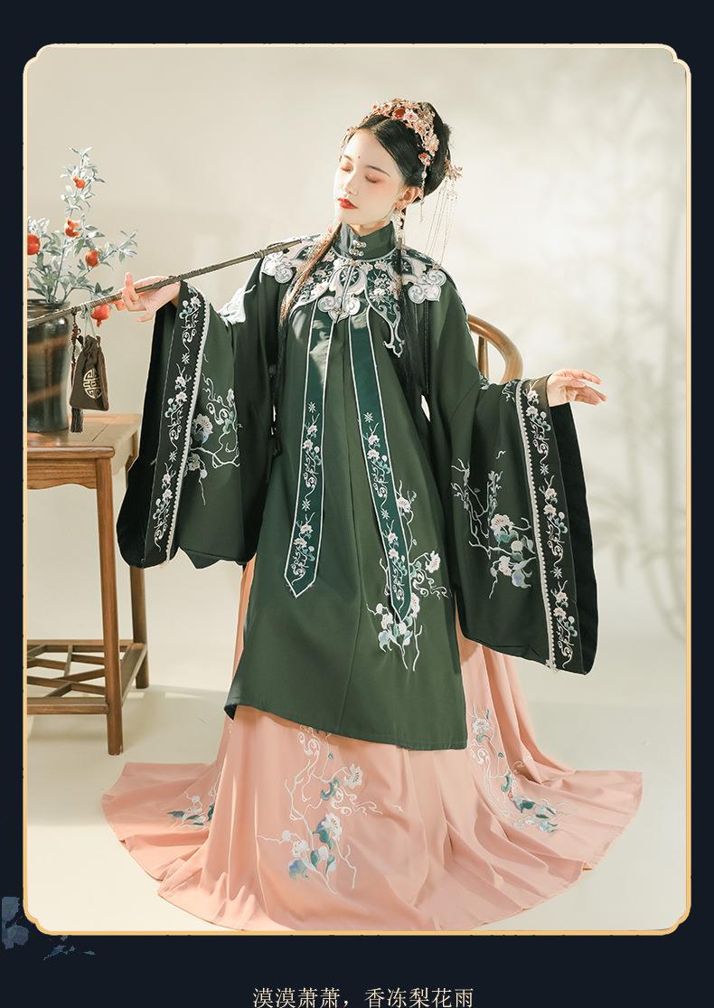 新しいオリジナルの漢服の女性の明製の丸首の大きい襟の刺繍の琵琶の袖の短い上着の馬のスカートの秋冬の項の古風のスーツ