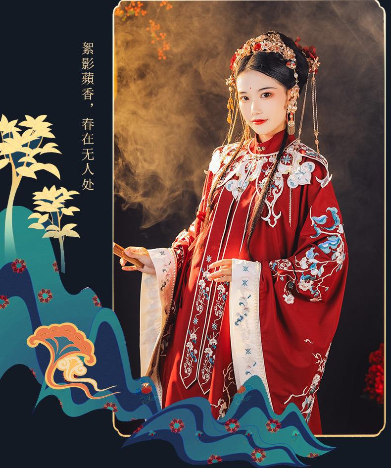 原创汉服女2025新款明制中国风长衫刺绣云肩花嫁红色古装婚服日常