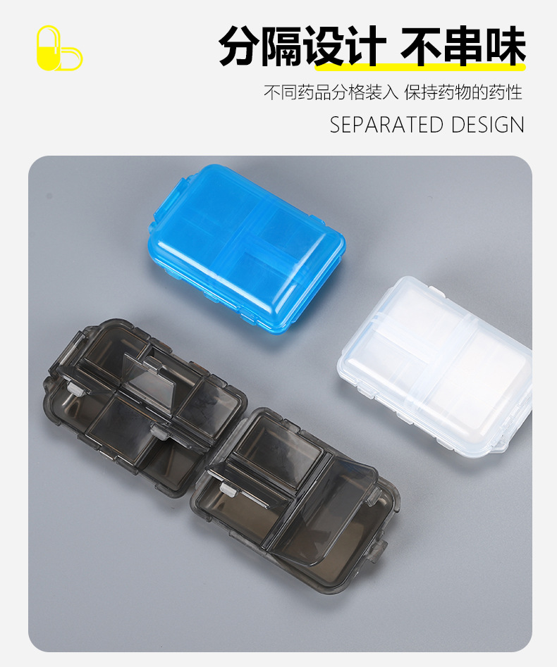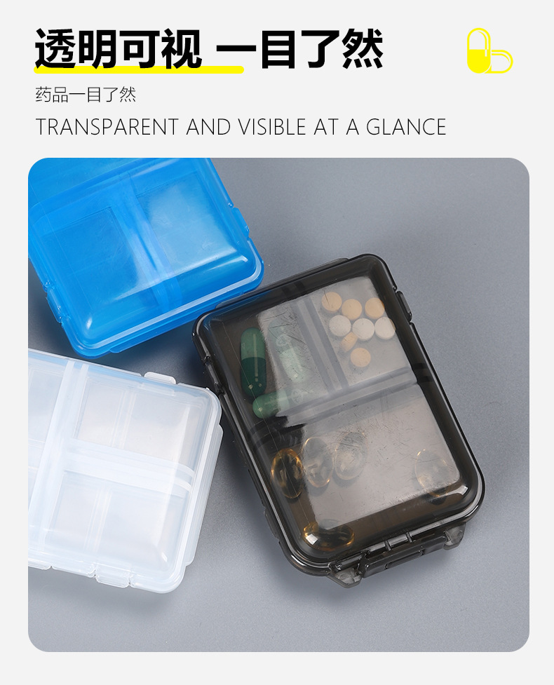 跨境双层小药盒分装药盒随身便携式药丸盒子透明10分格密封收纳盒