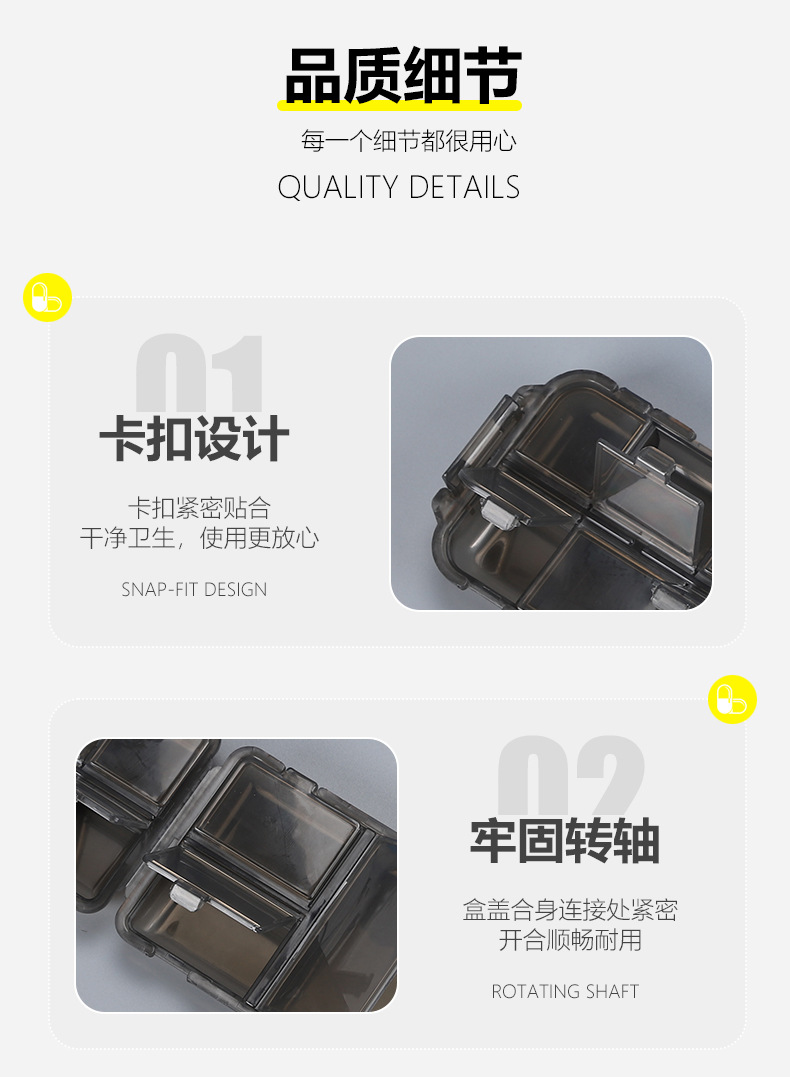 严选跨境产品随身小药盒 七天一周便携大容量药盒 14格药品收纳盒