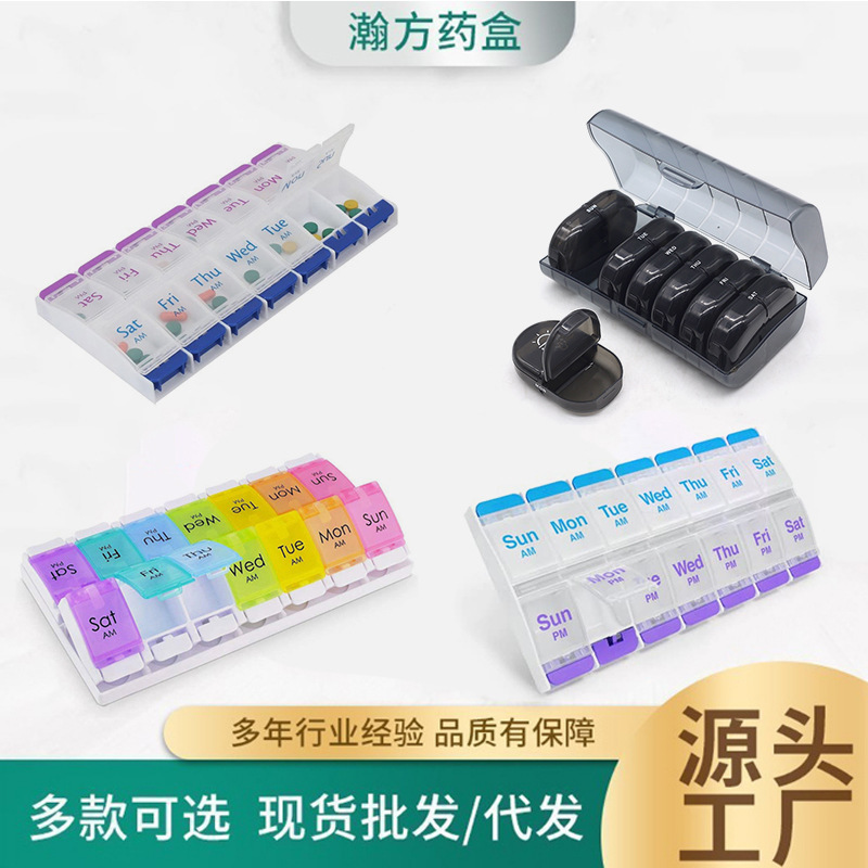 クロスボーダー専用二色薬箱分注箱一週間携帯7日間薬箱分類14格収納箱PPプラスチック箱