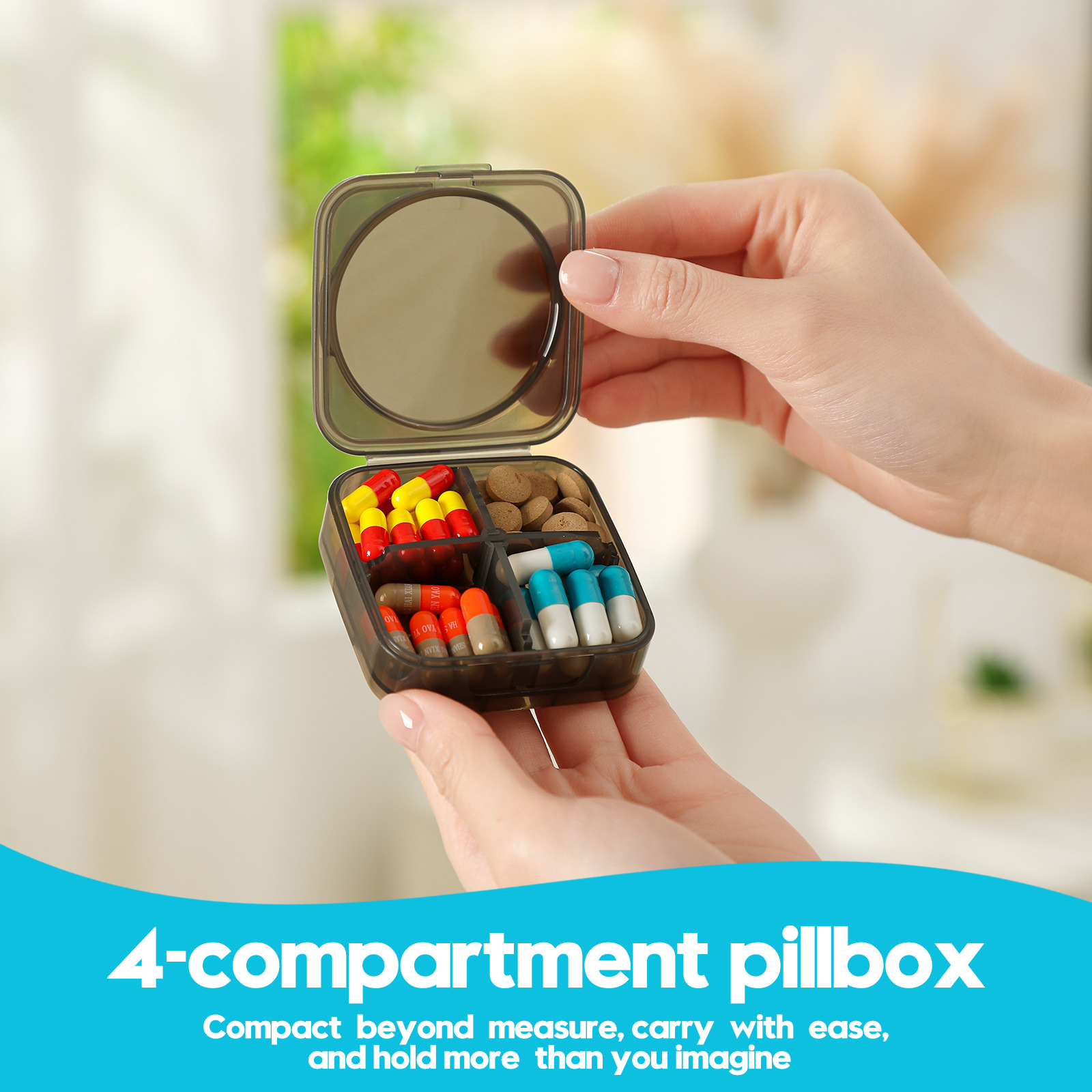 国境を越えたアマゾンPC材質の携帯薬箱分格シール分注箱ミニベルト旅行アクセサリー箱