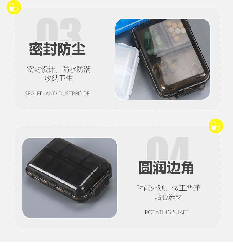 アマゾン爆金10格薬箱高品質正規品ポータブル二重分装旅行ミニ薬品丸箱