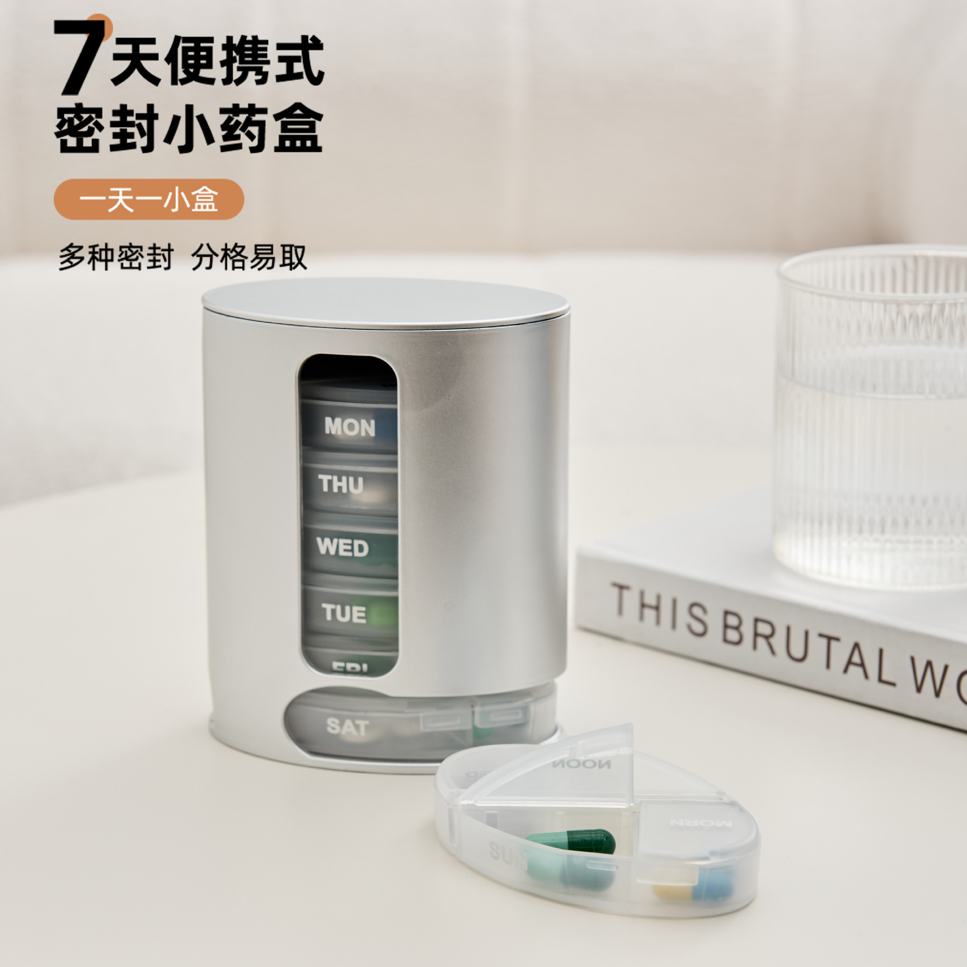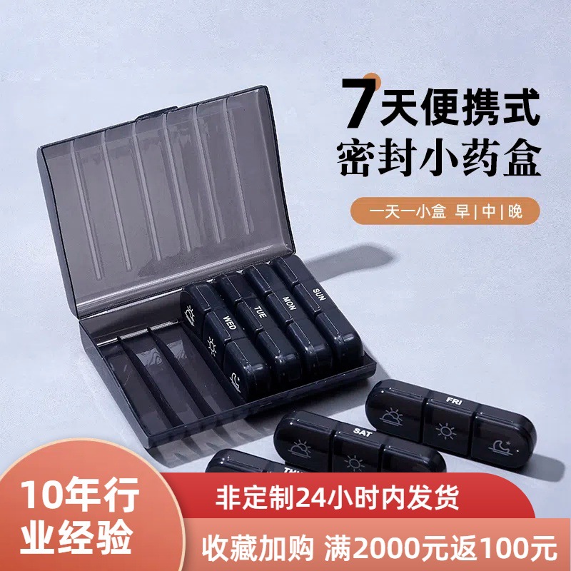 跨境迷你小药盒便携大容量分药器药品随身一周七天密封分装塑料盒