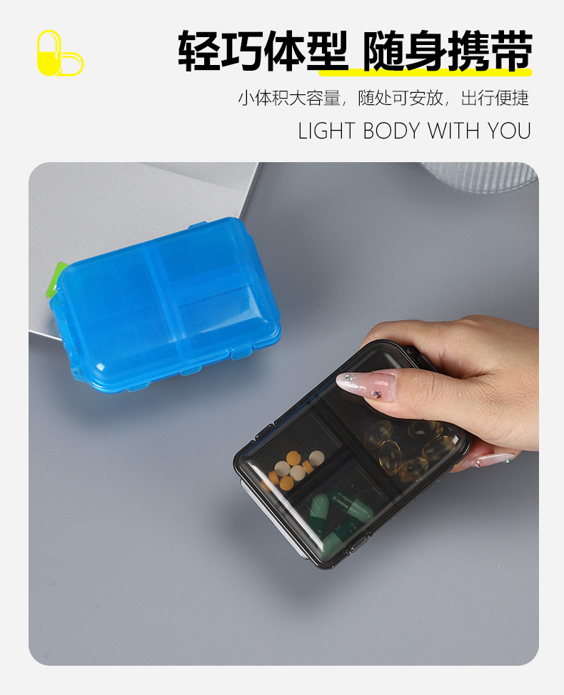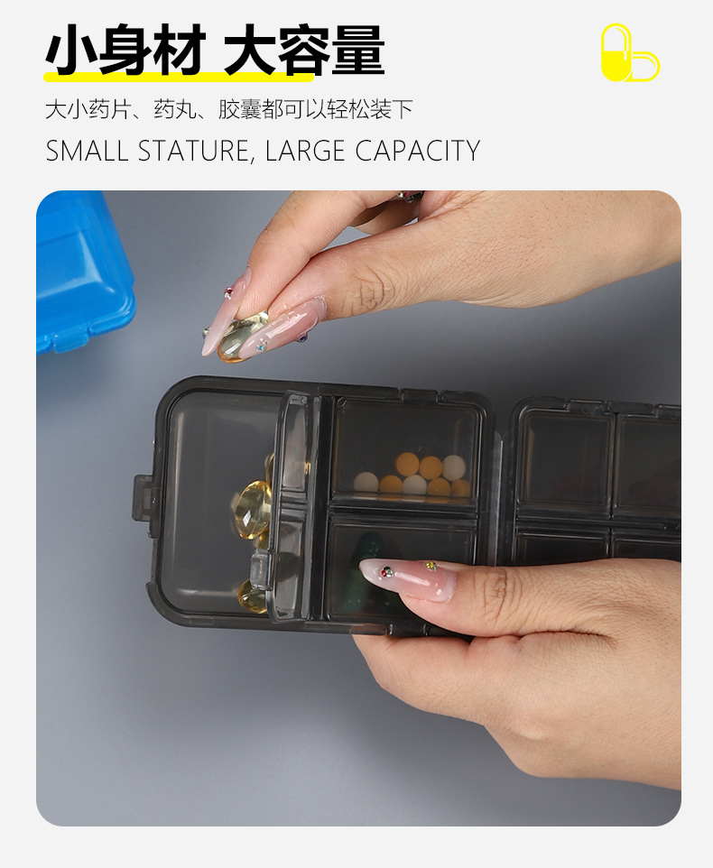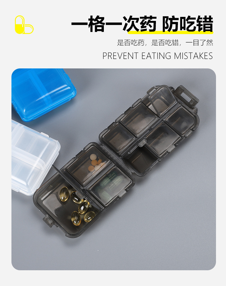 跨境便携式双层小药盒随身便携药丸分装盒10分格密封药品旅行收纳