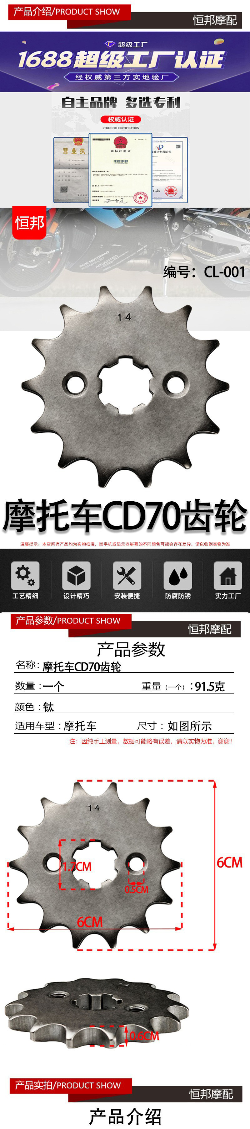 摩托车改装配件铁的材质摩托车CD70齿轮精细做工耐磨耐用
