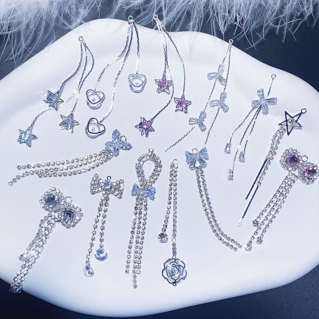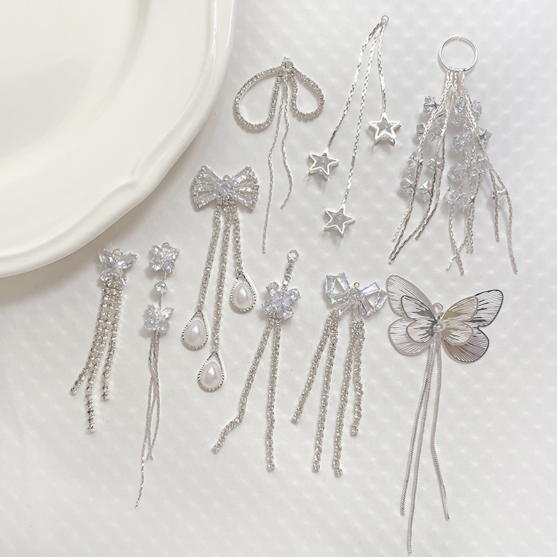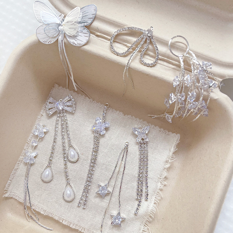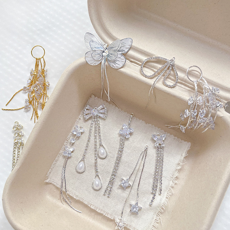 苒奕饰品 仙气蝴蝶星星锆石万能流苏手机链挂件耳环吊坠DIY配件