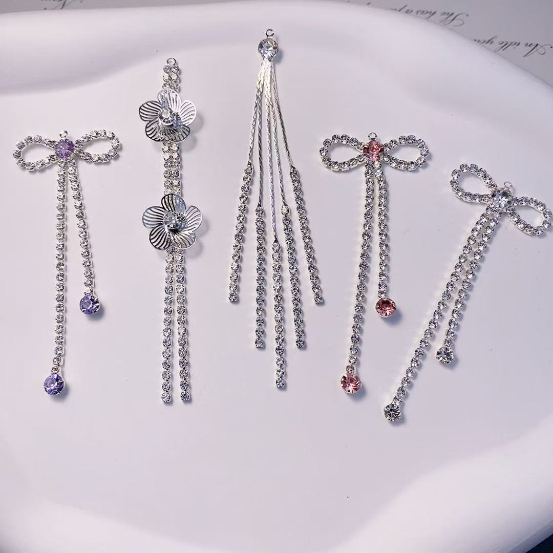 韩版气质超仙流星雨高级感流苏水钻链条镶嵌DIY手工精致耳环吊坠