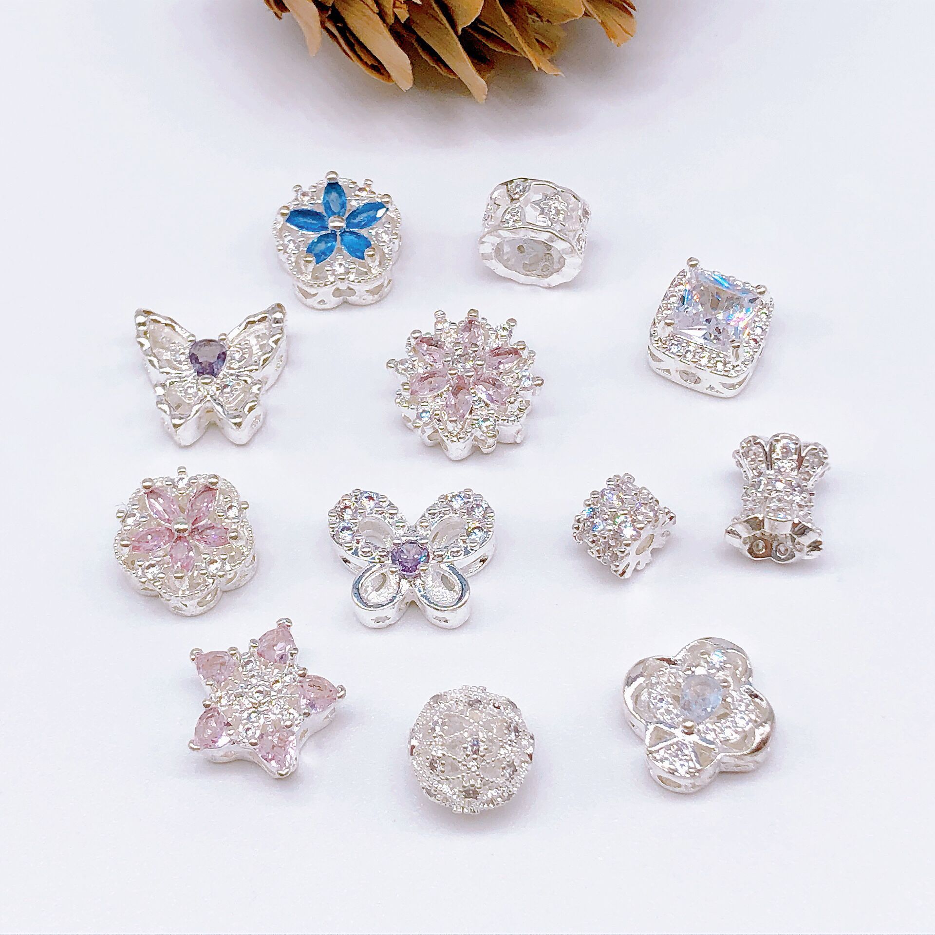 镶嵌海蓝宝锆石轻奢隔珠散珠镂空吊坠DIY串珠手链项链隔片配件珠