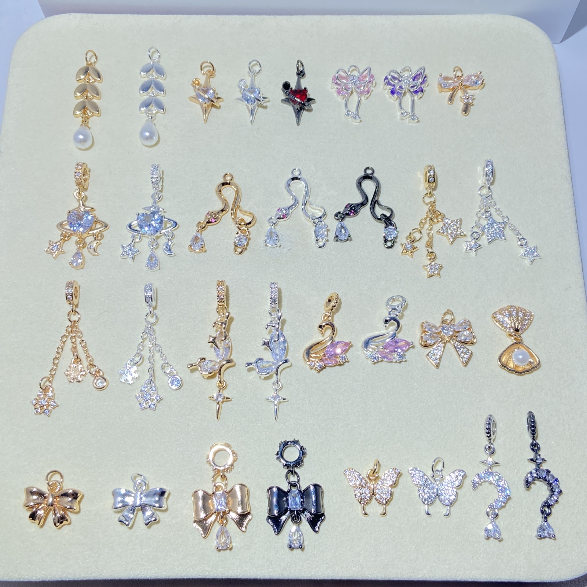 水晶diy配件14k包金保色锆贝壳蝴蝶天鹅星月吊坠手链项链串珠饰品