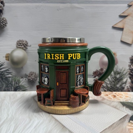 跨境新品独立站新品爱尔兰酒吧3D树脂带内胆马克杯