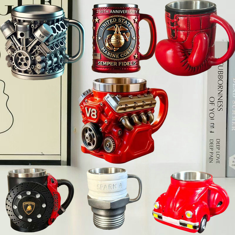 跨境新品V8 Engine Stainless Steel 3D MugV6发动机树脂杯子