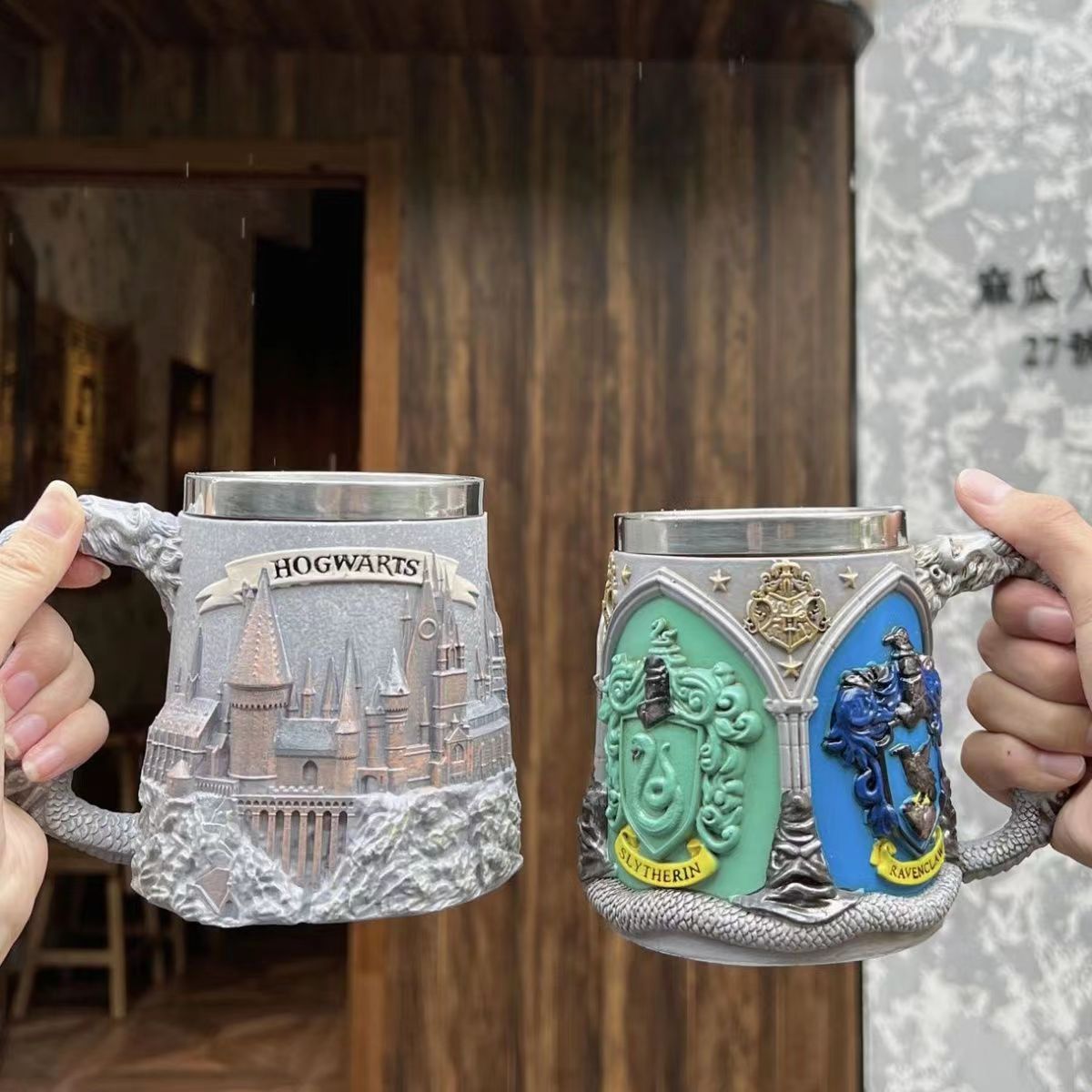 哈利波特马克啤酒杯电影纪念品哈利波特学院徽章树脂马克杯不锈钢