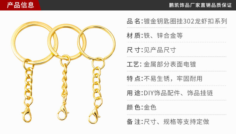 25/30mm镀金钥匙链挂龙虾扣diy饰品材料配件钥匙扣金属钥匙环挂链