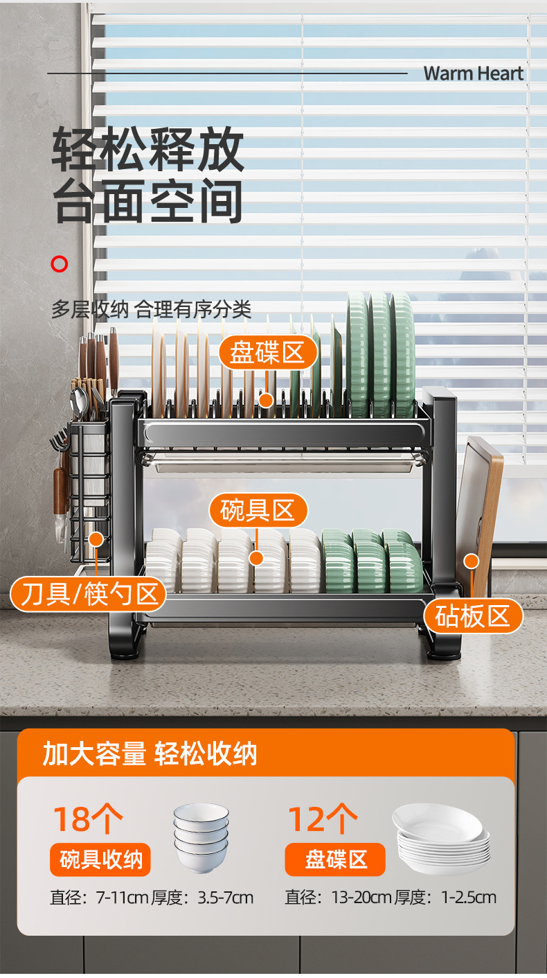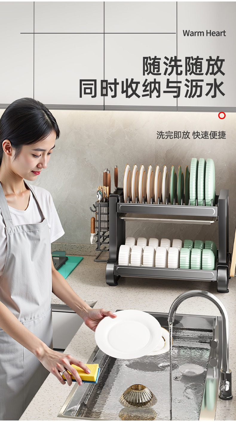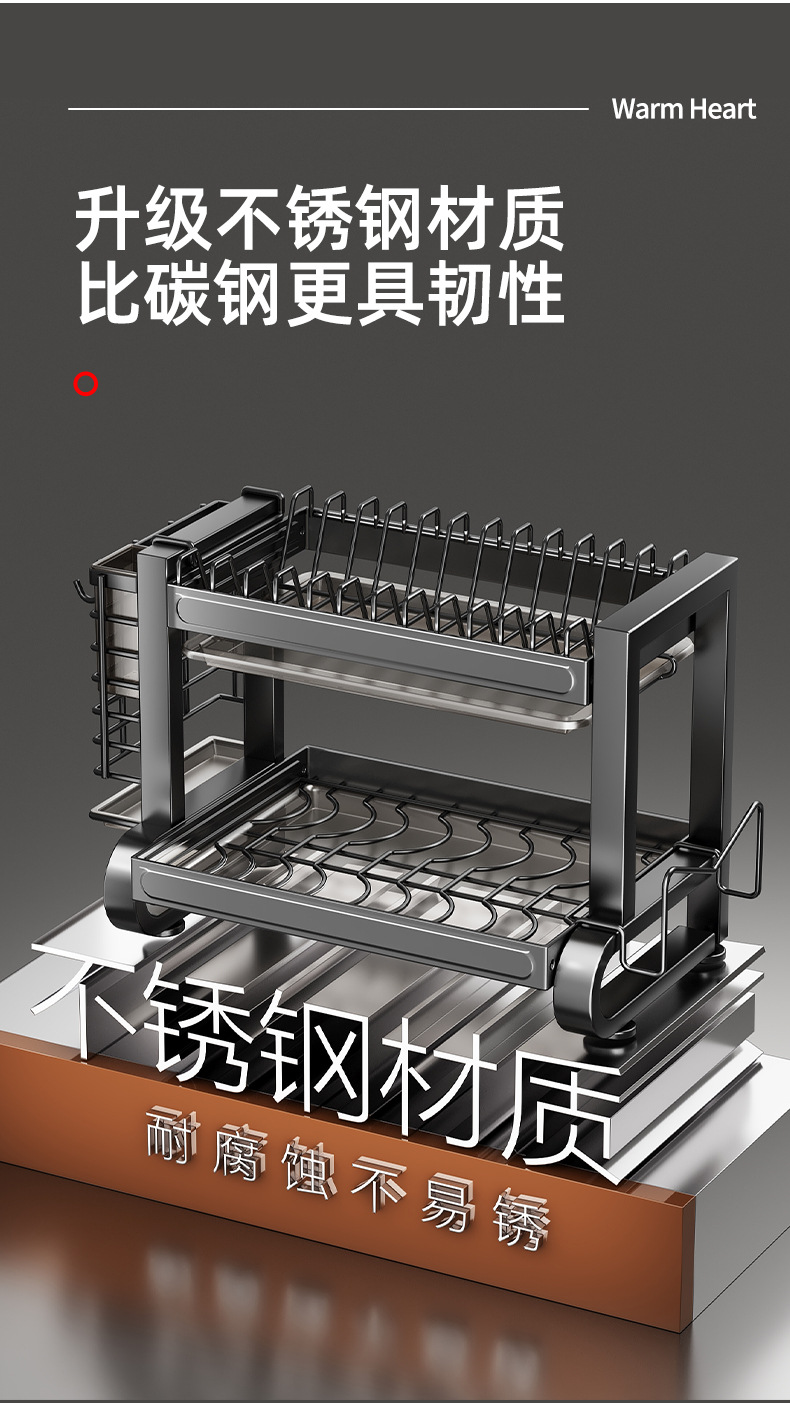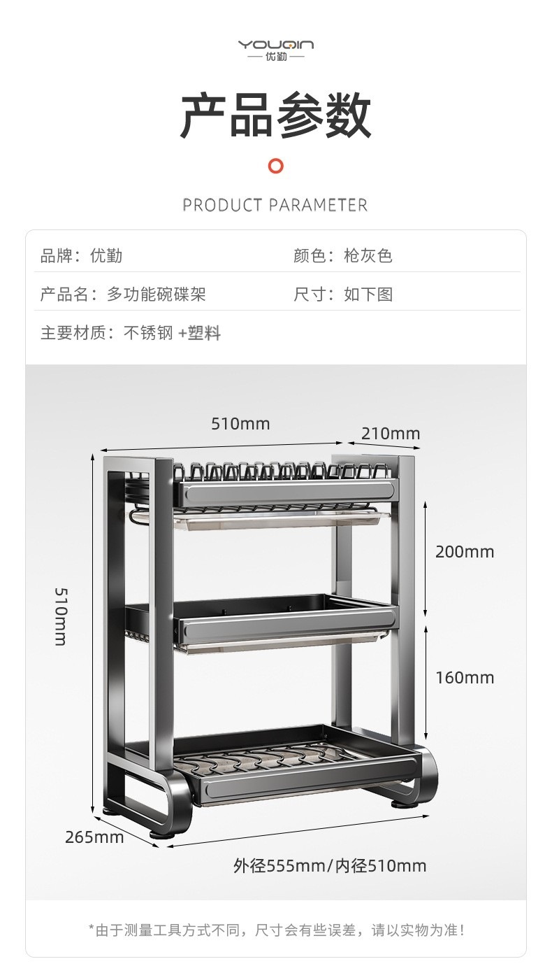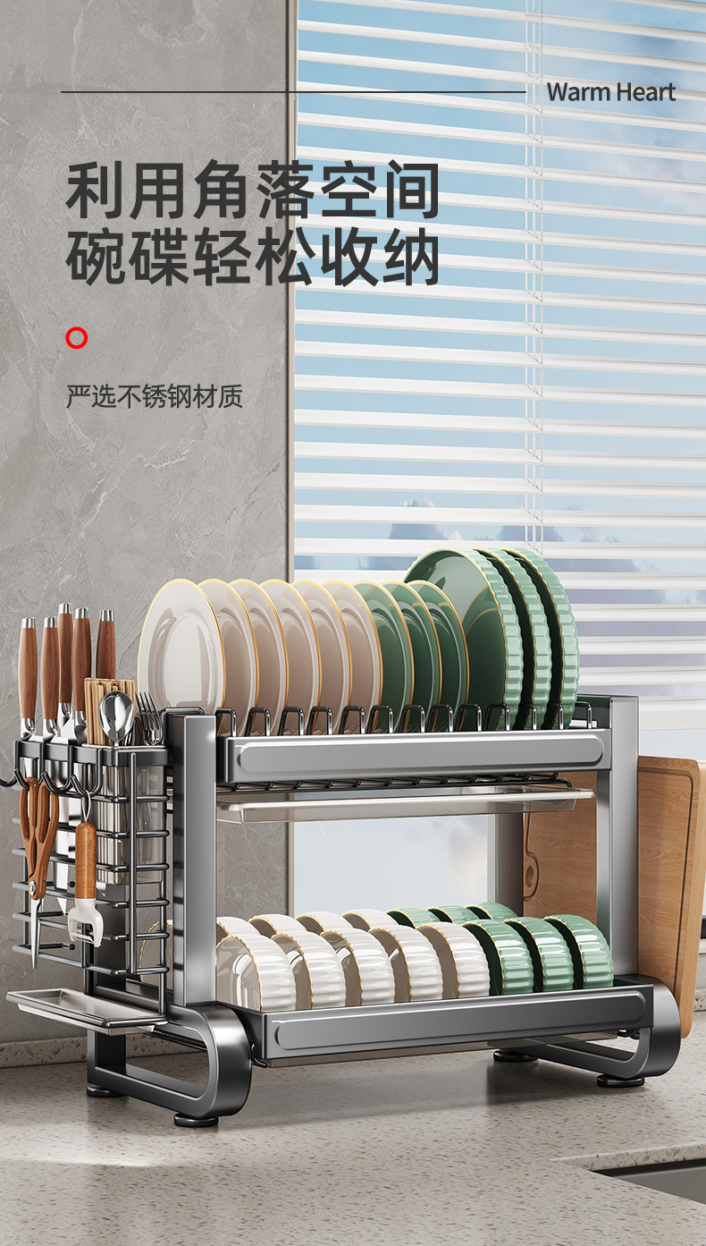 304不锈钢厨房碗碟沥水架 多功能置物架家用分层放碗盘筷子收纳架