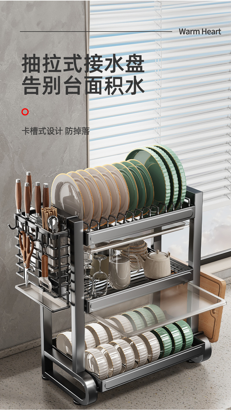 304ステンレスの碗の皿の収納棚の排水棚の台所の物置棚の碗の箸の刃物の家庭用多機能の碗の皿棚