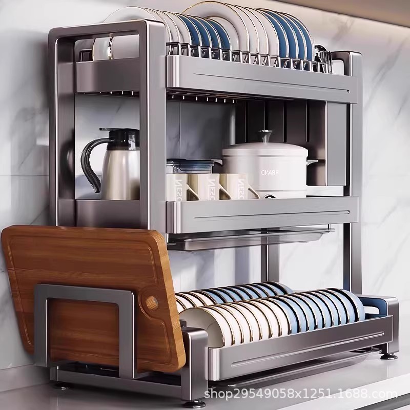 クロスボーダーキッチン収納ラックステンレス鋼のボウルとディッシュ収納ラック家庭用食器ボックス排水多機能食器棚