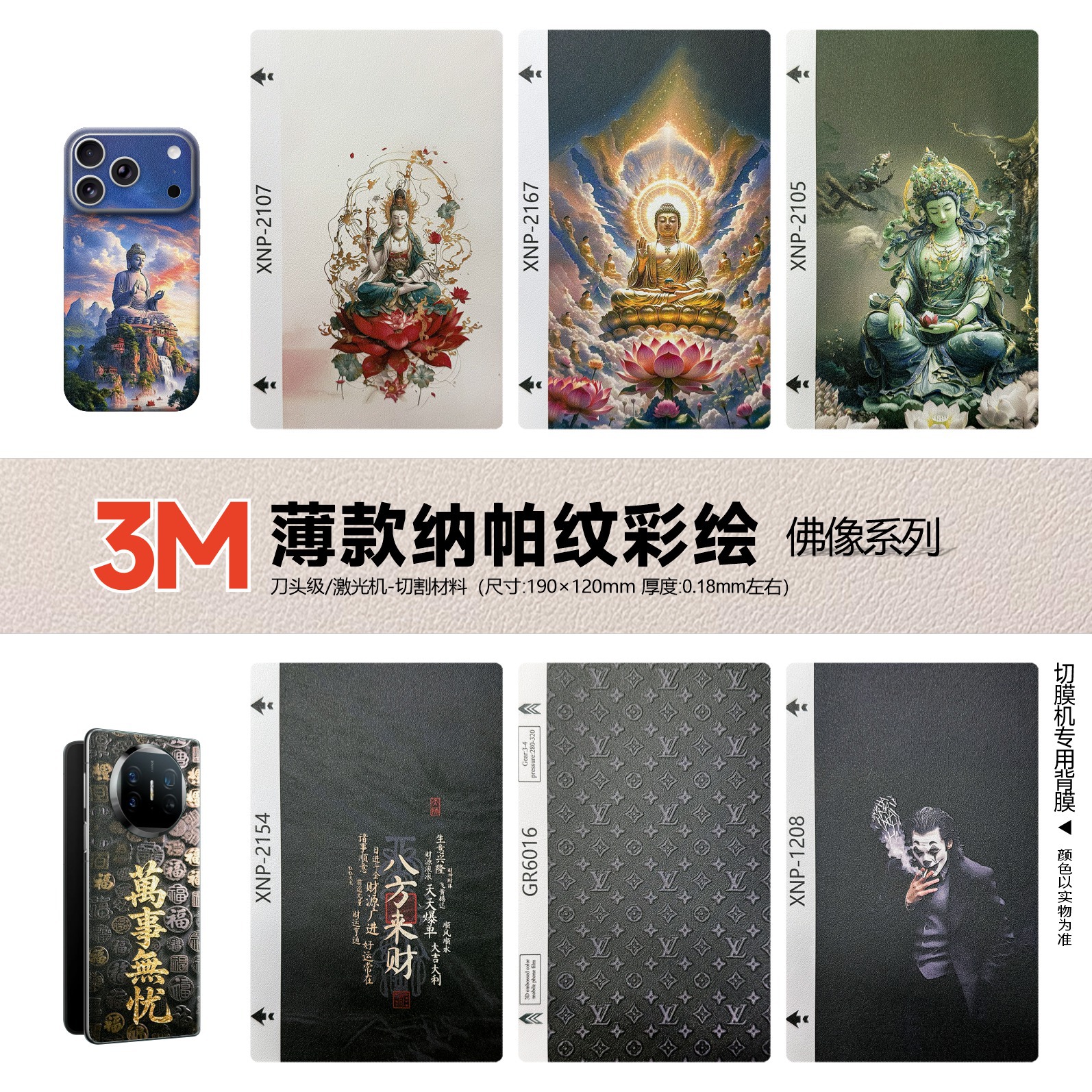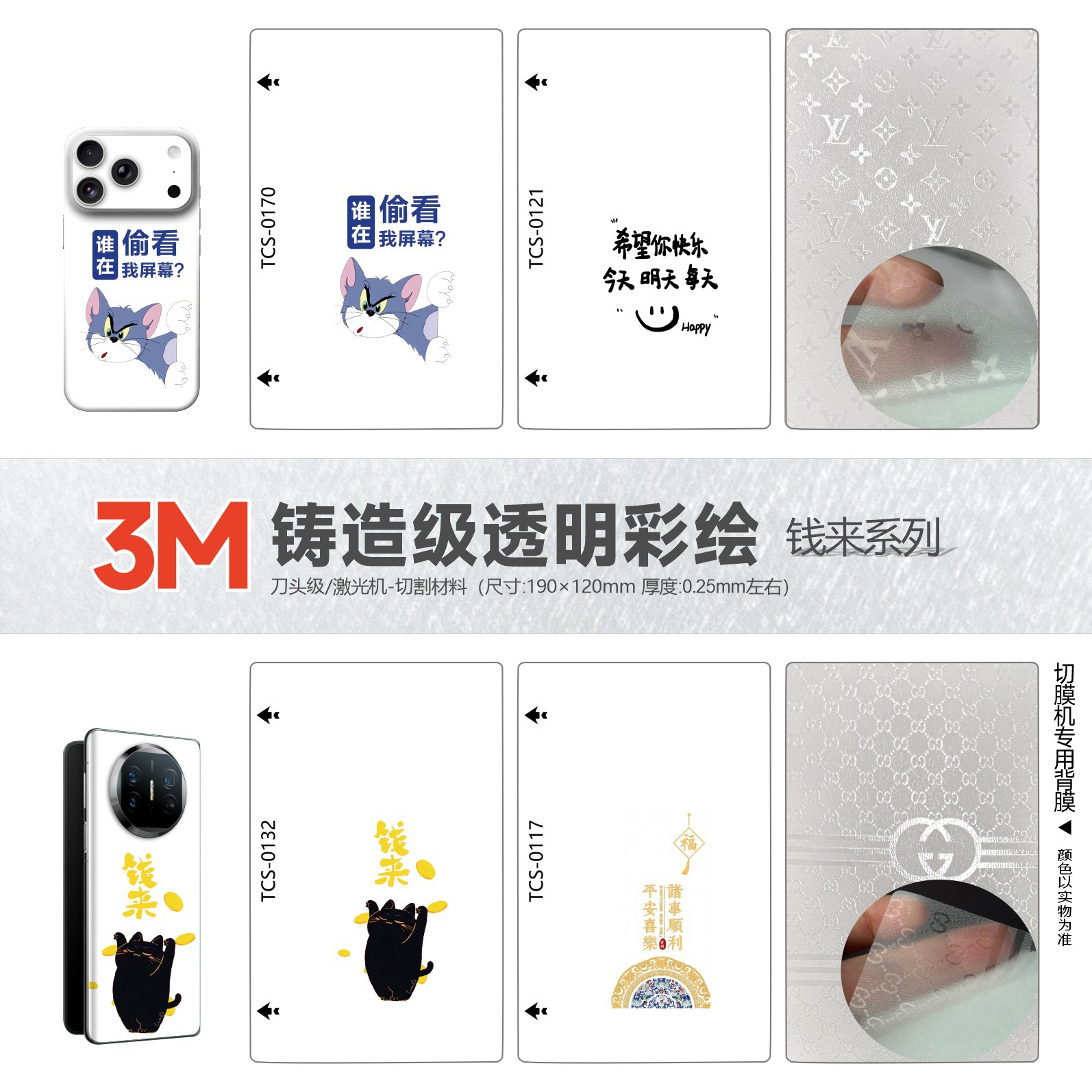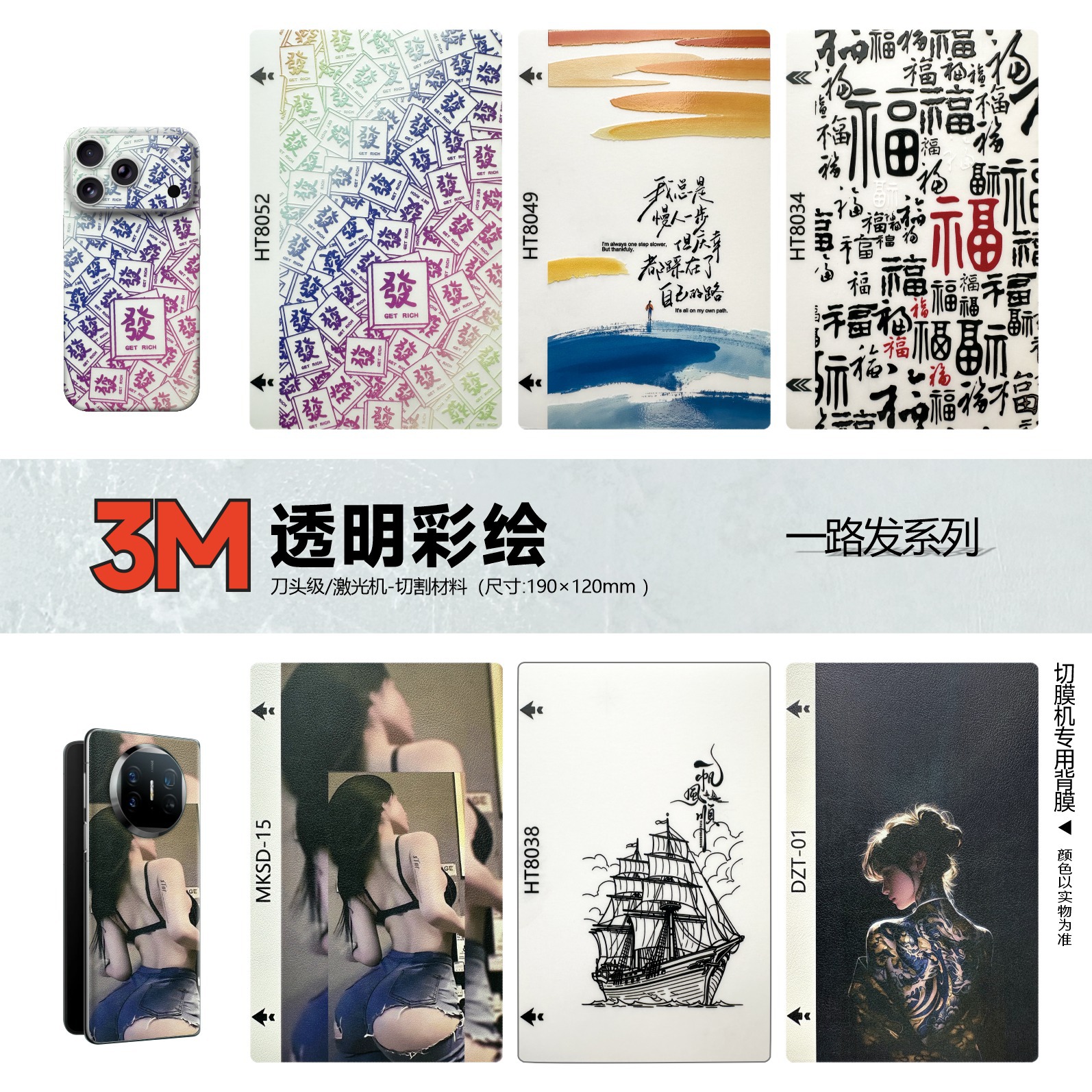 马年新款3M素皮彩绘压纹浮雕手机背膜折叠屏直屏后膜切膜机通用膜