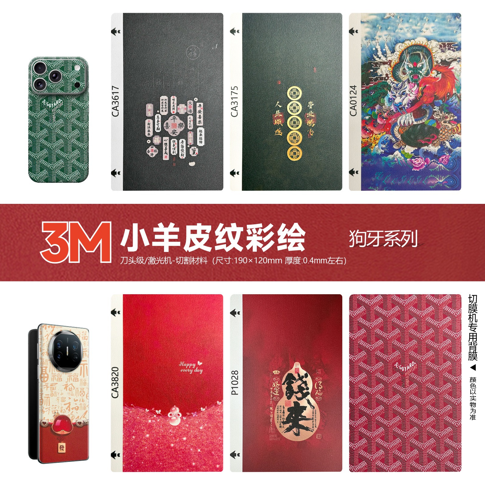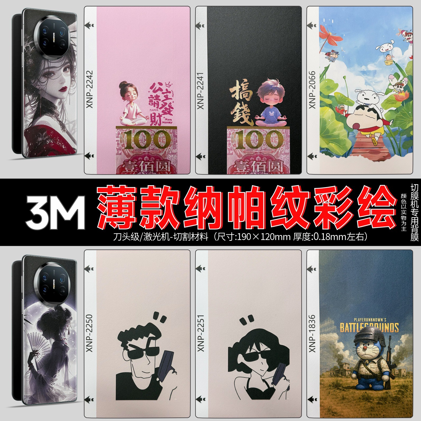 3M超薄款国风款素皮彩绘手机背膜切膜机通用素皮压纹折叠屏全包膜
