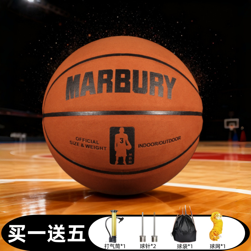 马布里篮球7号球翻毛软皮手感蓝球儿童5号室外水泥地耐磨训练
