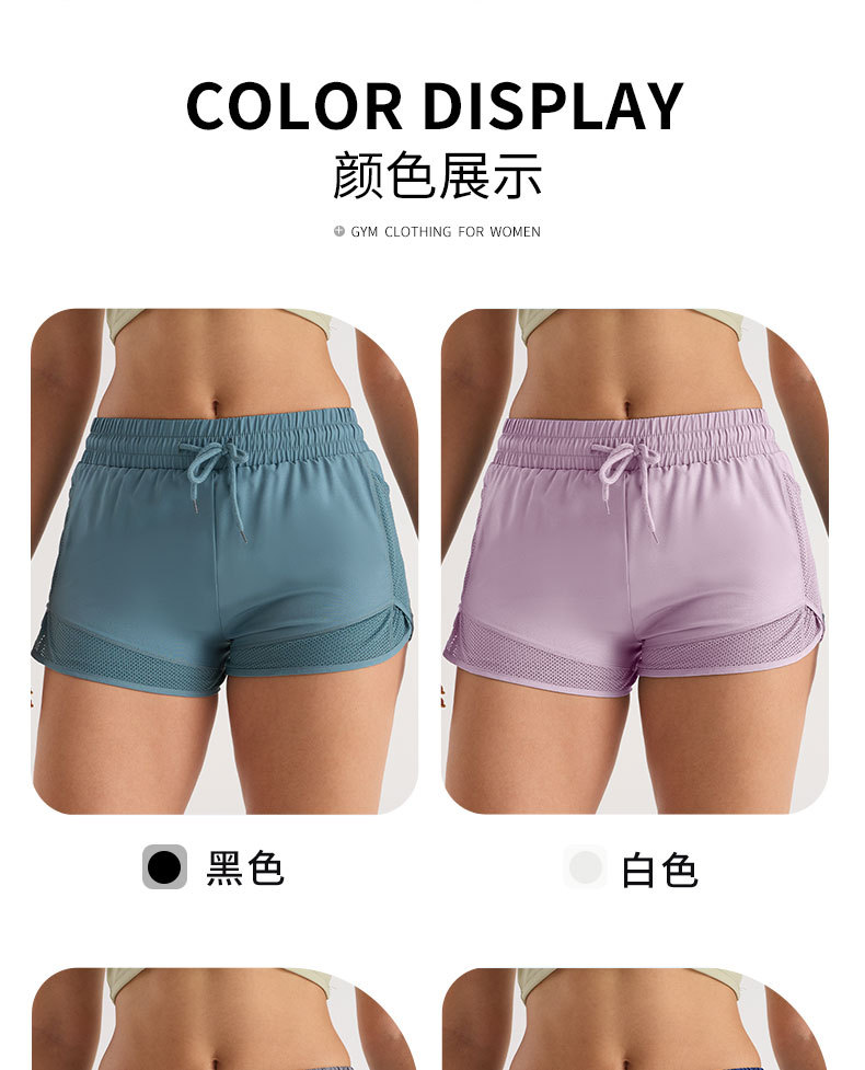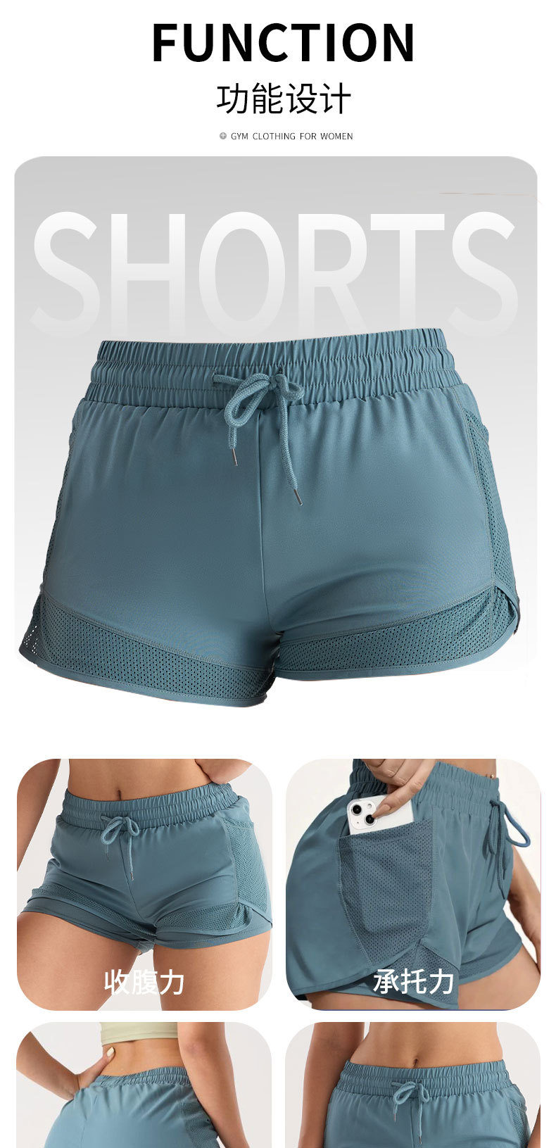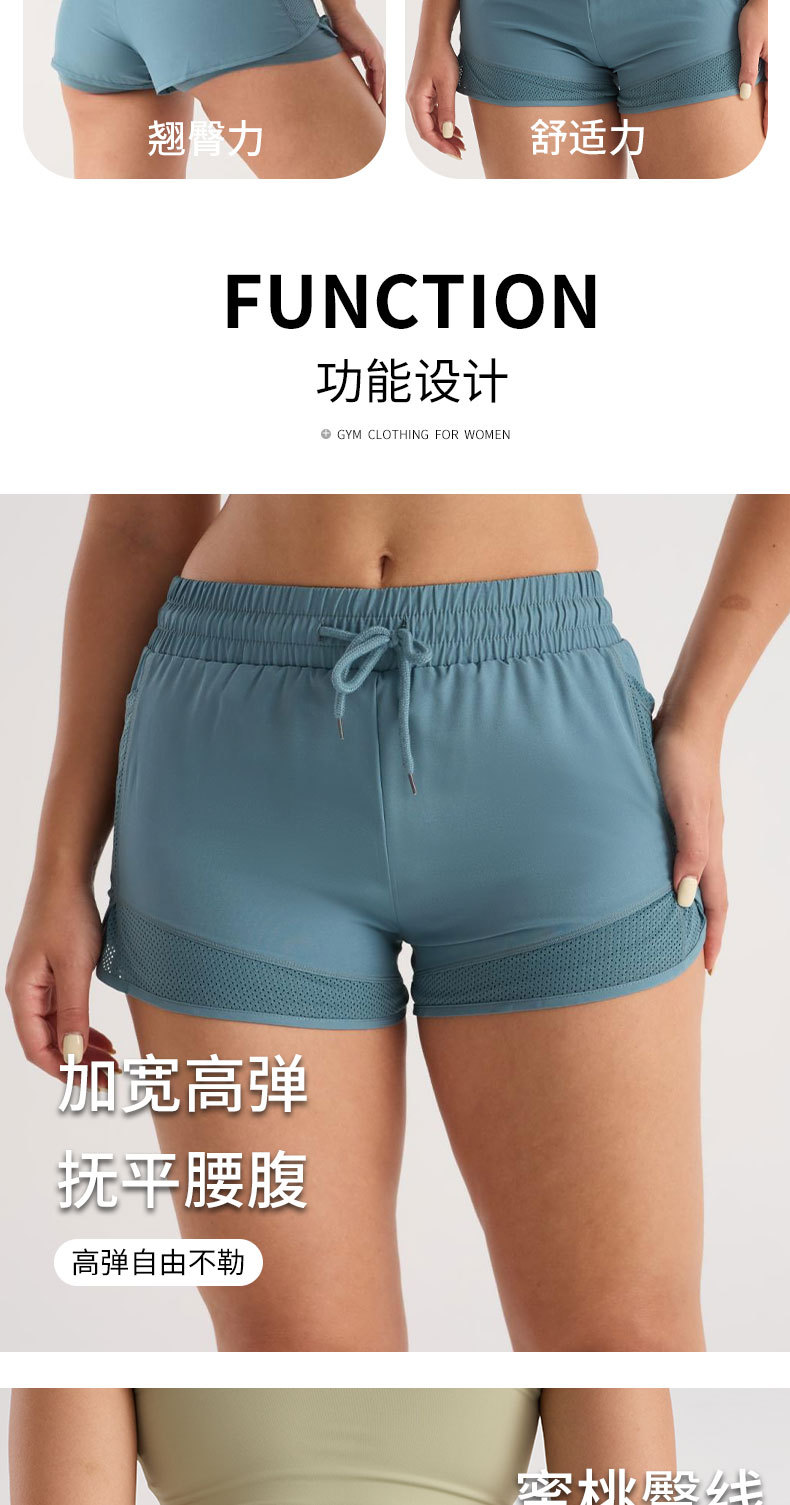 薄款速干运动短裤网纹口袋拼接瑜伽短裤跑步运动短裤女夏速干外穿